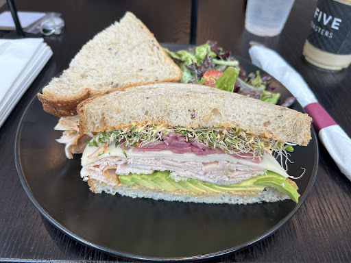 Read moreThis establishment is not far from where I work so me n my colleague decided to go in for a late lunch . This place has outdoor seating which is perfect on a nice day. The atmosphere was very open, clean , and calming. However the staff here wasnât friendly no smiles or greeting when come in or approach the counter. More of a what do you want and this is the price why of experience. For that type of experience corporate should just invest in a kiosk to place an order. Rather to enter a place of hospitality with no hospitality. I ordered a turkey deli sandwich with a vanilla latte w/ oatmilk and my coworker ordered a Cuban sandwich. My Vanilla oatmilk latte was phenomenal maybe one of the best latte I ever had . My sandwich was very fresh and delicious. Bread was extremely fresh to it tasted homemade. My colleague also really enjoyed her sandwich. However it was hair in her sandwich however since the Cuban took about 20 minutes to come out we really didnât have time to order another plus at the counter they have a sign that says no refunds or exchanges which was pretty weird for a restaurant to have plastered in front of the restaurant. My sandwich came out quickly, Iâm assuming because the Cuban is served hot it takes more time to prepare. But she said it was worth it! The prices are fair for the area and quality . The portions great our sandwiches were big enough for 2 people we both took the other halfâs home for lunch the next day. The sandwiches came with a mixed green salad which was also fresh and delicious. I would definitely come again especially for the latte. I only gave this place a 4 because they lacked basic hospitality and i would recommend staff to wear a hair net because if it was my sandwich it would have been a...