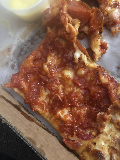 The pizza was pretty good, not my first choice but decent. The cheese has a quality flavor, crust is good although do need to break the rising large bubbles to avoid full pieces of pizza being almost a full bubble, sauce has a nice flavor but pepperoni is under the cheese not allowing some grease to escape.