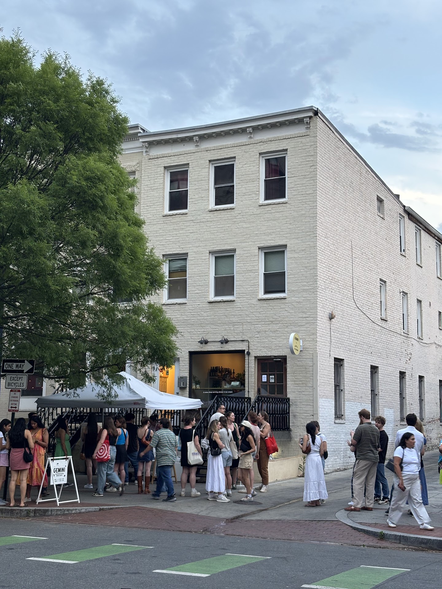 There are 2 tiny little standing tables inside enough for about 6 people to stand and eat dinner, and outside there are about 4 little tables for sitting to have wine or dinner but they are dinky. The menu is fabulous and priced accordingly (ie. Not cheap). Including tip and tax, we paid $55 each (110 total), and we each had a glass of wine and shared 5 appetizers, plus had leftovers. The serving staff are very friendly and kind and patient with the hordes of people (seriously standing room only and so crowded). Do NOT come here for a cozy quiet night. DO come here if you want a unique, vibey kind of urban young hip experience with creative food.
