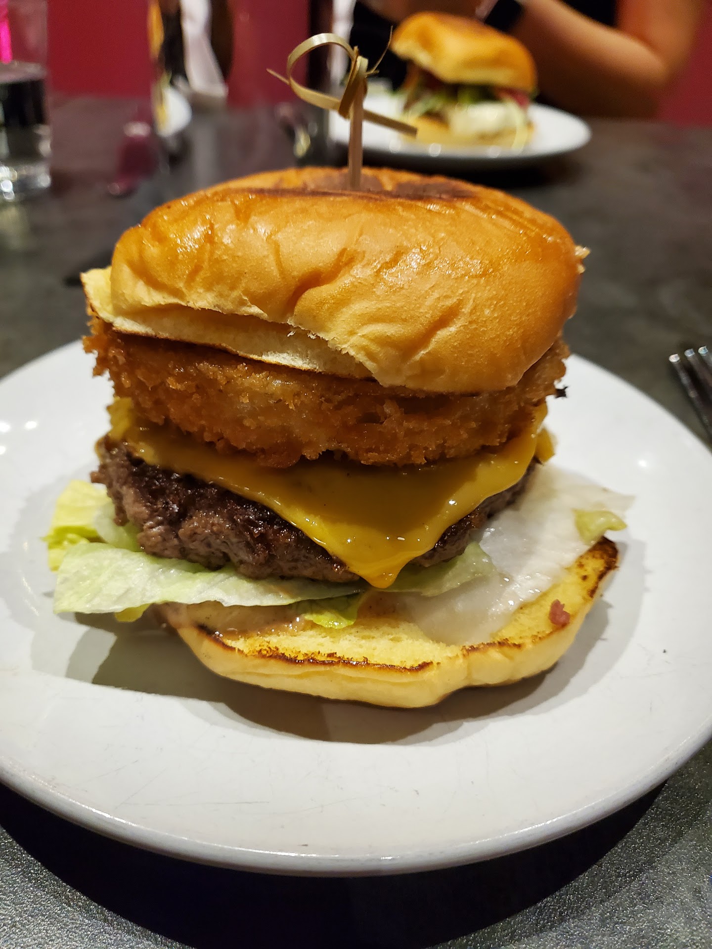 We both ordered the the LTD burger. It probably could have tasted better maybe if I was in a better mood. The bread was soggy. It was served on a small plate. The burger did not taste bad. The crinkle cut fries felt like they were over fried frozen fries. The sauce was good, and the bar tender was great. Expected better quality for the price.