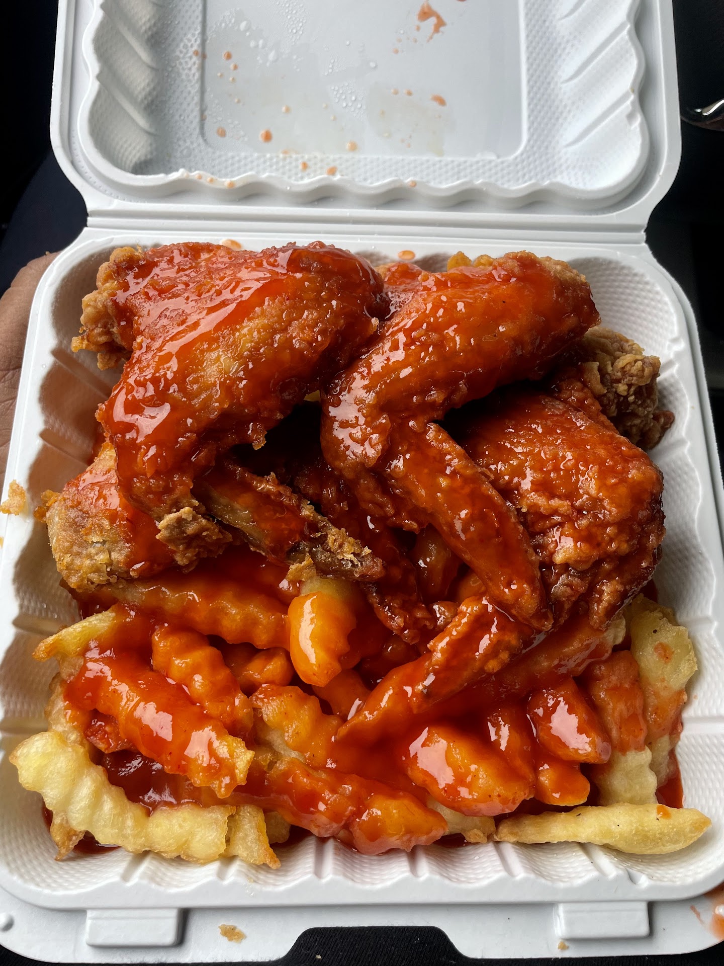 Their 4 Wings & French Fries (with salt, pepper, ketchup, Mumbo sauce, & hot sauceOne word in DC on the fries, & just Mumbo sauce on the wings $10.15). DELICIOUS!