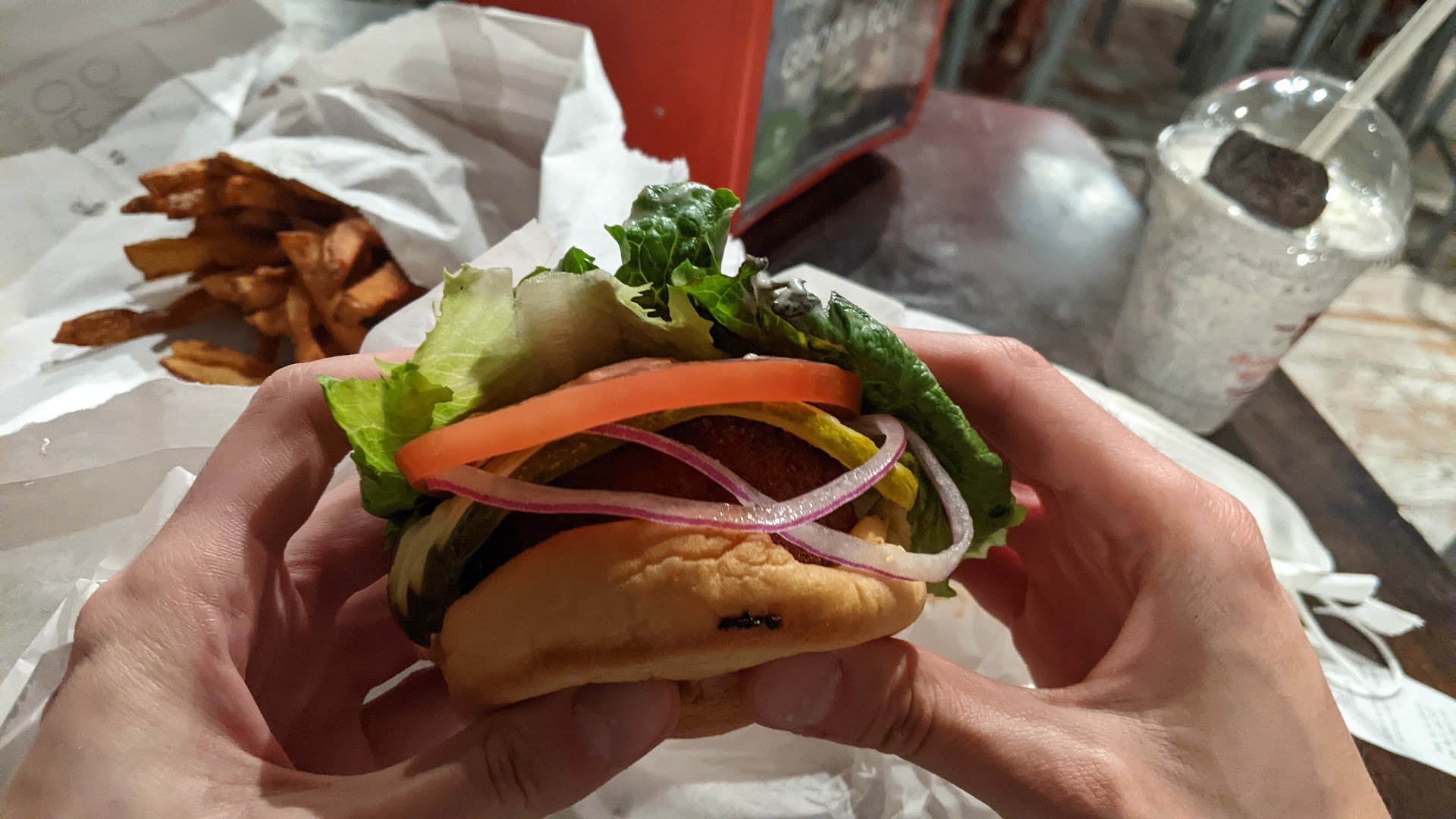 The Nashville Hot burger was not hot at all and rather bland, so I had to get a few sauces to make it less bland. And, I'm not a smoker so it's not like my taste buds are shot. The bun bread is good and chicken is well fried just tasteless.