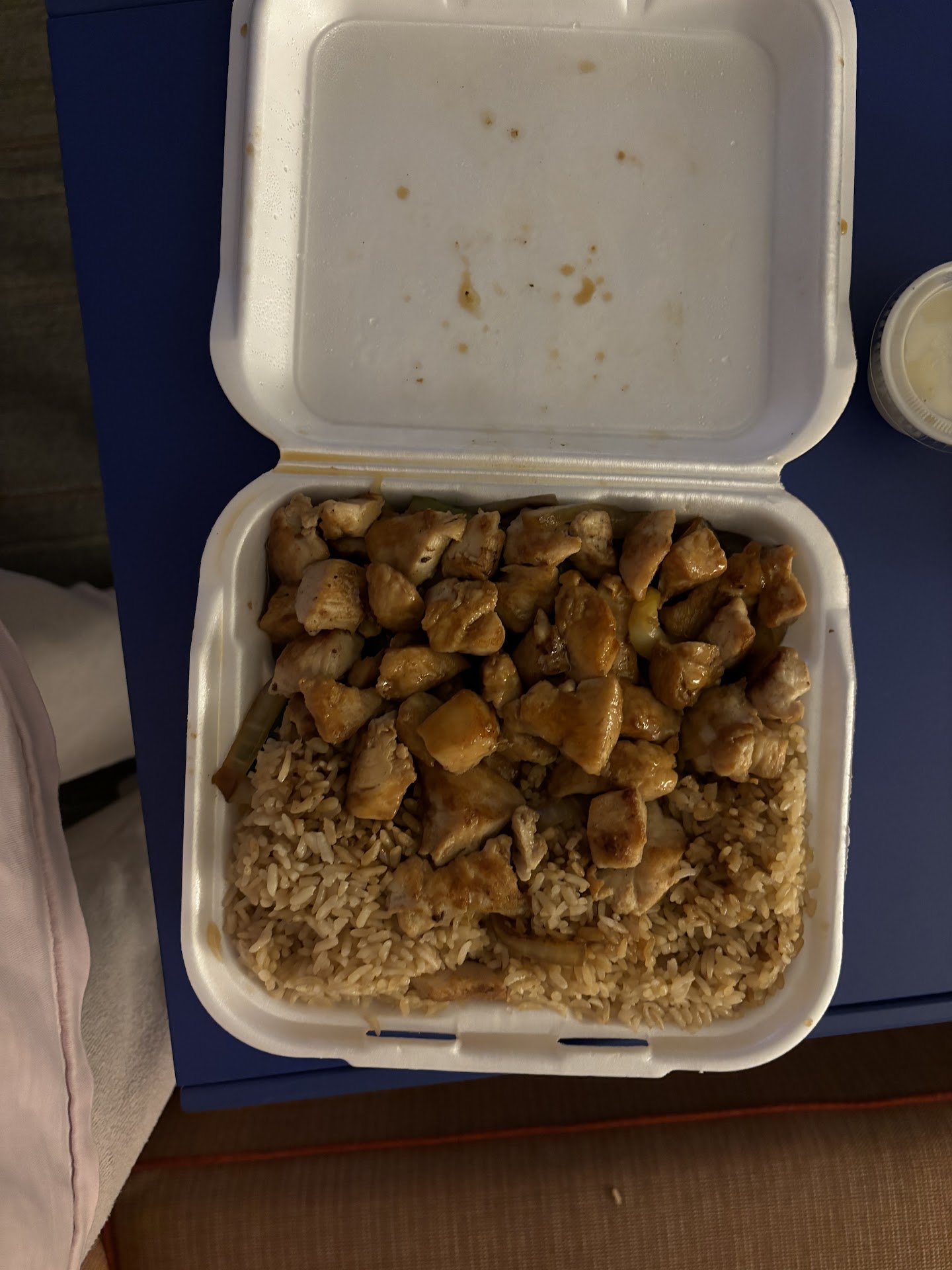 Read moreI ordered Teriyaki Chicken and when I got back to my room with it there was no sauce, I asked if I could bring it back and they said yes. I bring it to them and he says open the box, like the food is maybe still warm at this point but I’m like “…” so he pours some sauce on top of the chicken but not much so I asked for a little more, he puts like 2 more drops. When I got back to my room the second time, the food was barely warm. It was salty, not very flavorful, couldn’t finish it because it just wasn’t good. I also had ordered tempura vegetables and there is no tempura sauce and the breading seemed like regular panko. I...