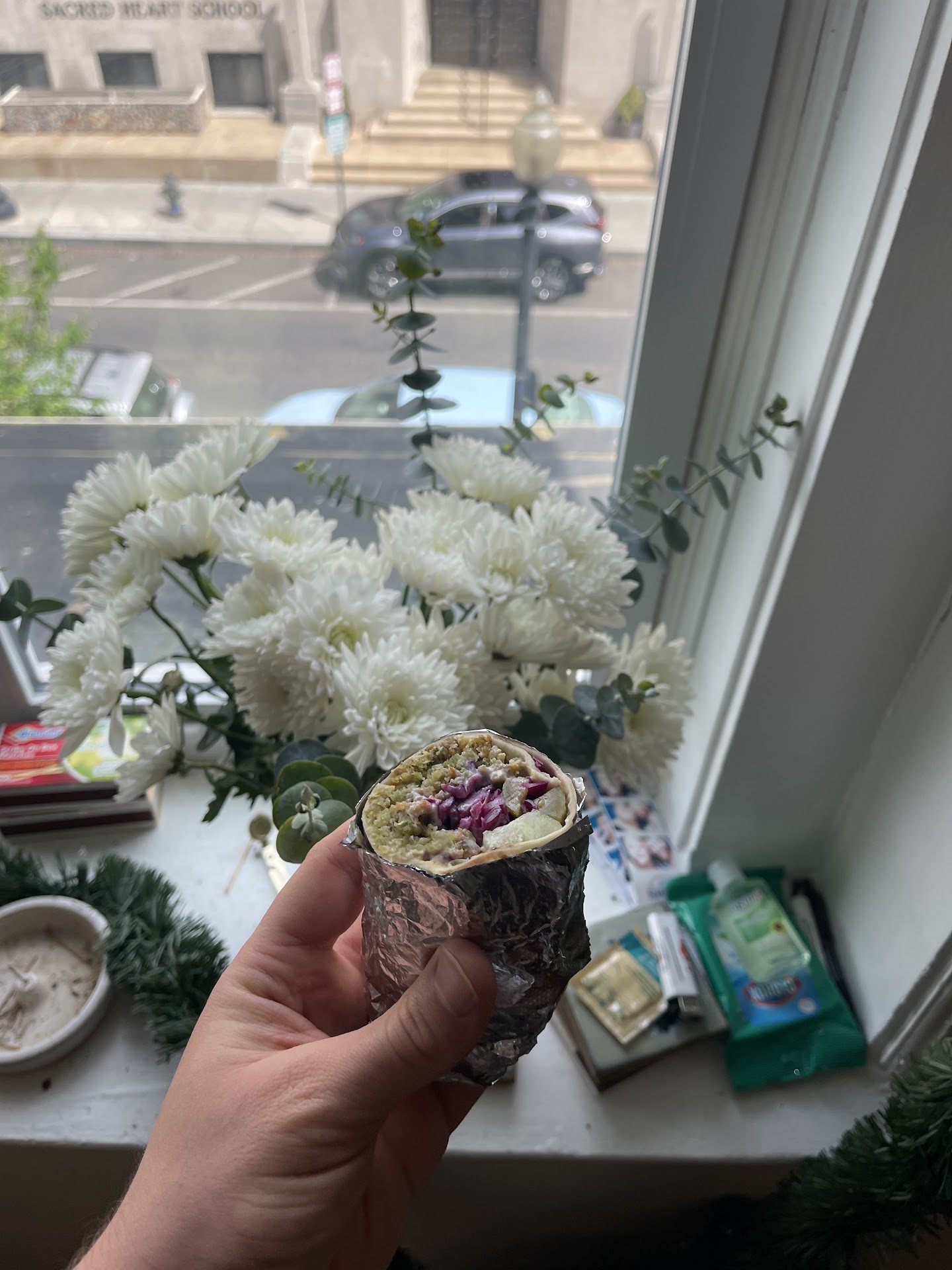 I never miss it Saturdays at Mount Pleasant Market. A must. And, when I’ll be away the next weekend or two, I stock up. And bring them to friends. Ask to skip the tahini and they’ll nearly keep forever. Cut in half, capped with press and seal, and popped in a sandwich zip-lock. Refridg or not, they’re all veg. They are marvelous to have along for a traveling meal or to fill in a corner. I regularly bring them with me traveling, everywhere, or when I’m just doing errands. They are a perfect tag-a-long but super amazing when eaten...
