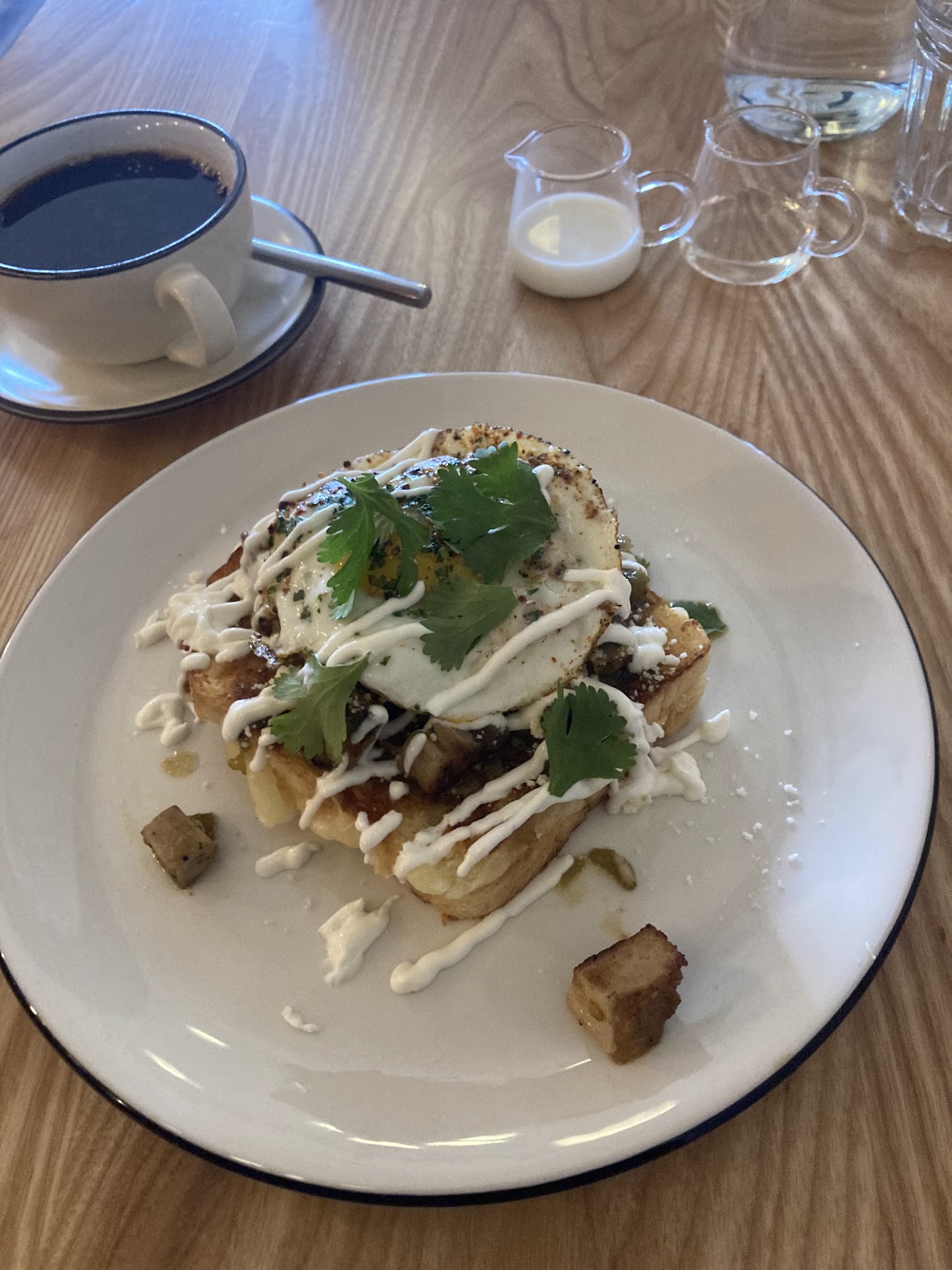 Read moreWonderful new quaint spot in Navy Yard where the breakfast options are vast. Iâve tried lots of breakfast places in DC & Navy Yard but there was room for another and this place is going to fit in nicely. They offer a nice menu that matches some traditional menu items with other unique twist like the Fontina Egg Scramble, bulgogi, milk bread and a spicy Gochujang Aioli. The ambience is modern, warm and bright & the service is wonderful. As the bartender told me, they want to pay attention to detail and feature locally sourced food. I tried the hatch green chili smothered pork belly with cream & cotija cheese layered over their signature milk bread with a fried egg in between. I went back the next day and tried the chicken fried sausage with black pepper gravy topped with a fried egg and layered over the milk bread. I canât wait to come back and go through the menu. They have lots to choose from including the âlox of loveâ taters & toast, avocado shrimp toast, French toast. Theyâre still rolling out their menu and have some an all day brunch menu that includes a Reubenish sandwich, Turkey club and a BLT. I canât overlook telling you about their coffee service. Itâs top notch coffee that includes pour overs, cappuccino, espresso and lots of other beverage options including fresh squeezed OJ. The kimchi egg sandwich was also incredible! It Has a...