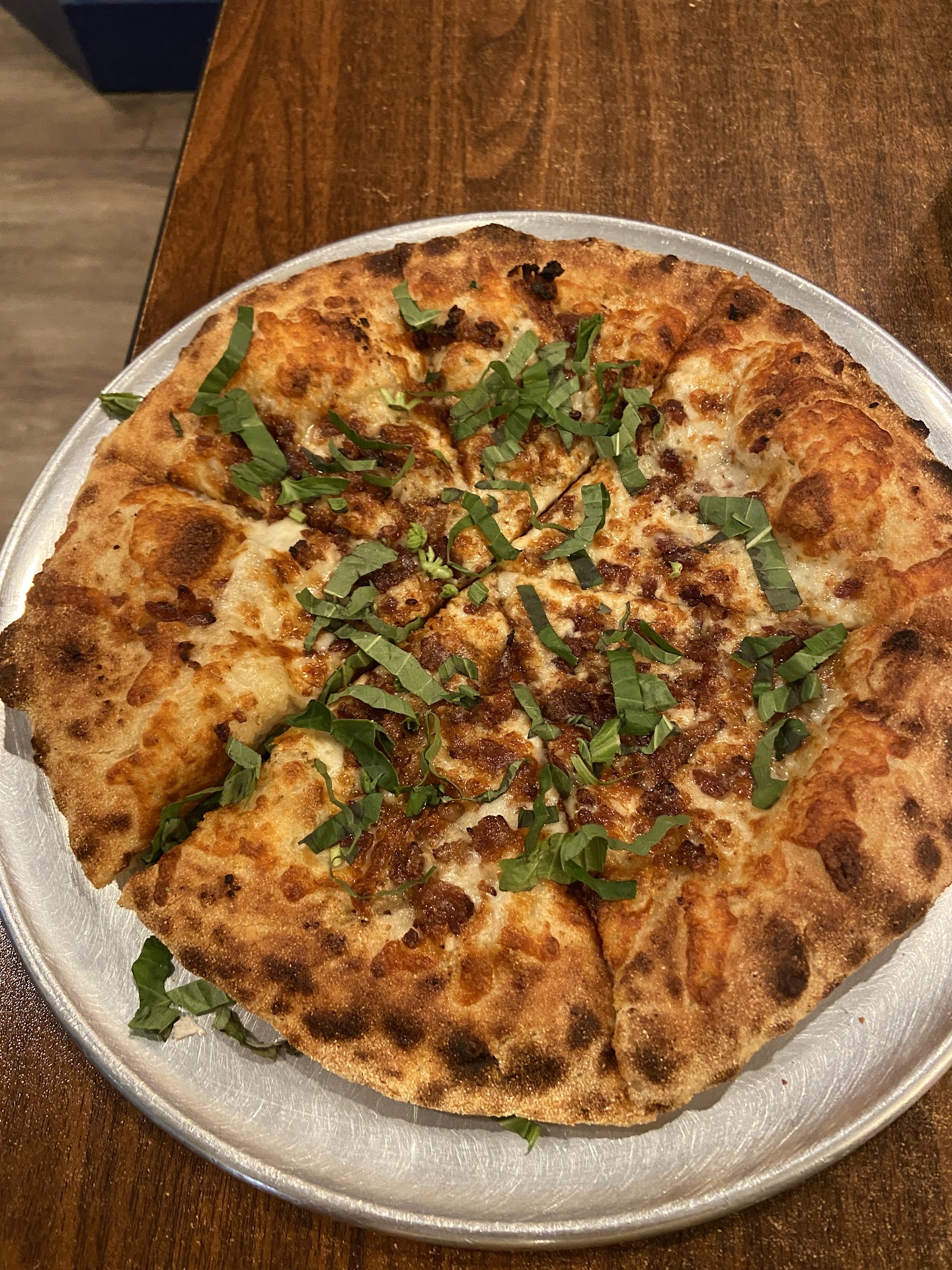 The food was great! We both ordered a 10" pizza. The thin crust is a perfect mix of crispy and the outside and chewy in the inside. The cheese was amazing. The sauce was a great accent. My girlfriend also had veggies on hers.