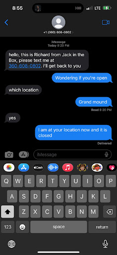 Read moreWe've been to this jack in the box multiple times and this was the final straw. The food is almost always old tasting, cold or not even correct. They randomly close when they are supposed to be open because all the employees take breaks at the same time which I don't think is supposed to be happening.