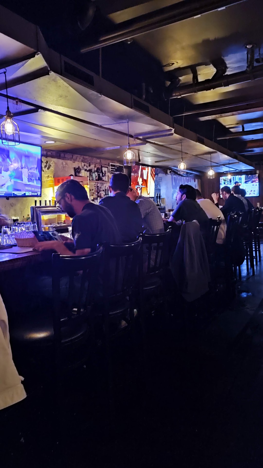 TL;DR This is a bar, not a restaurant. Food found elsewhere. Wide draught selection. Cheaper than average. Caps game = packed. Otherwise, fairly quiet. Dark, speakeasy vibes