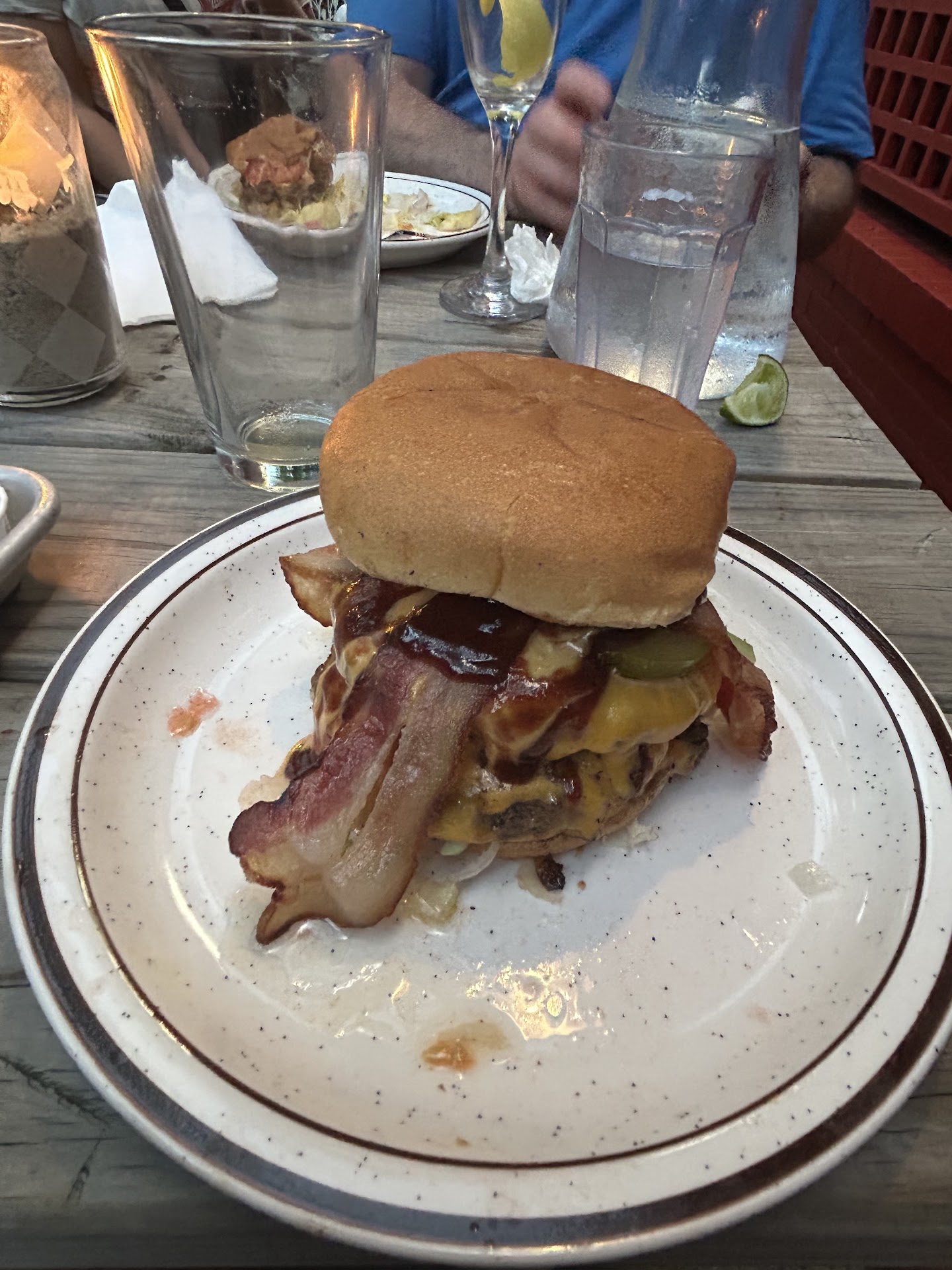 Despite this rocky start, our waitress was a redeeming factor. She was friendly, attentive, and made a thoughtful drink recommendation, which we appreciated. The cheeseburger platter we ordered was delicious, but it lacked a distinctive quality, tasting very similar to the frozen burger patties I usually buy from Costco.