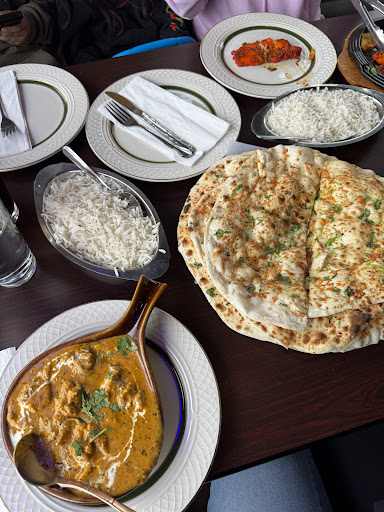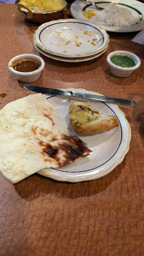 Went with a fairly large group and we needed 2 separate tables to accommodate everyone which was fine. They were expecting us and that went smoothly. I ordered the saag gosht curried lamb and some plain naan bread. The food arrived in decent time given the group size though we were waiting some time to order beforehand. When ordering there was some confusion about naan coming with the entrees or separate and it does NOT come with but reasonable at 1.99 for the bread. The naan was good not crunchy or soggy just right. The entrée was 12.99 also quite a good price. The lamb was probably a bit overcooked for my taste though the sauce quite acceptable at level 5 of 6 spice. It has been a while since I have had Indian food and I was expecting perhaps more green separation since this dish has spinach but it is in the sauce only. This is where I felt the waitstaff could have usefully upsold by suggesting a side salad or something with bright colours (orange peppers/tomatoes?) to offset the fairly dull appearance of the dish. White rice was included and I would have used another gain maybe multi-colour (wild). I ordered a chai tea which was correctly served towards the end of the meal and was of good temperature and spice balance though the mug could have been a little bigger. In contrast, the food served could have been slightly hotter in temperature particularly the lamb. The ambience of the restaurant is not great but I focused on the people around me and the food and also was not facing the single tv playing Indian entertainment in the back of the room. It blended and was at a decent volume. The décor was ok....it's in a strip mall what can you expect? Service after the initial wait to order was very good with waters being refilled frequently and staff thus available tableside for any other needs. We had a large group so it is understandable the waiter asked which dish went to whom and also the separate cheques (though I was handed someone else's bill which I quickly sorted out)...