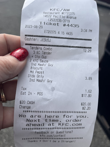 Read moreWish I could give no stars worst service ever...hubby ordered online when I got there they wouldn't answer phone like on there sign for pickup...tried calling for 5 mins went to drive thru asked why nobody answering phone I get becuz I working the the drive thru so nobody else can answer phone...hmmm hubby called and she didn't answer phone...then proceeded to be rude and when I got to window shoved my food out the window slam window shut and then had to ask for the plates that were ordered and they threw them at me and to top it off our order was wrong worse kfc ever plz dont go there they have bad customer service ...and the lady argued with me like really not very good customer service...so sad they this bad no wonder they never busy......what even worse is noone from company called me back from corporate becuz that what the...