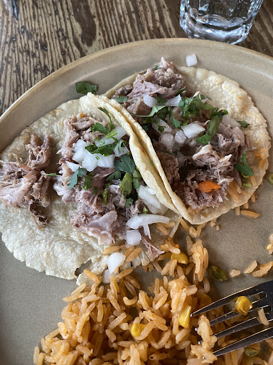 My husband was debating between the burrito and the burger, and our server suggested the burger. It was honestly the best chorizo burger either of us has ever had. The fries that came with it were soggy and terrible. Didn't matter. We hardly noticed due to how amazing the burger was, and it was filling enough that we were not hungry even though we didn't eat the fries. I got the veggie tacos, and they were also amazing. The beans and rice were also good.
