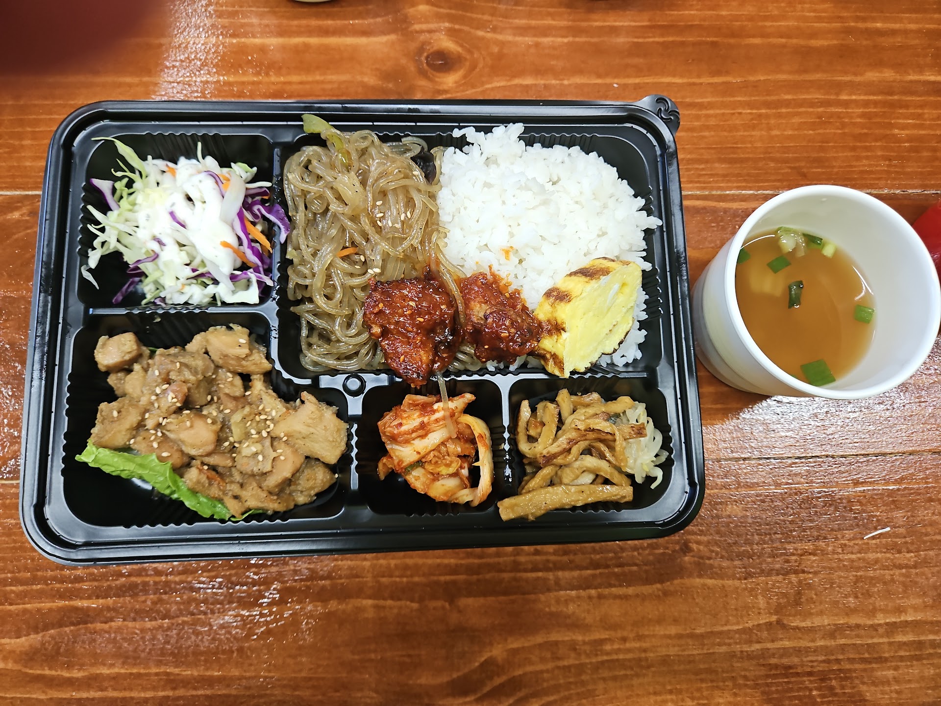 the lunchboxes are a great meal. we often have some leftovers to reheat later. we personally recommend the spicy sweet fried chicken, pork belly lunch box, and kimchi pork stew. the aforementioned chicken is mildly spicy, but delicious even to people who aren't korean cuisine fanatics. their rice cakes (tteokkboki) are also delicious and not overly sweet. almost everything comes with a side, like rice, salad, or soup. food is never cold when it reaches your table (or takeout bag.)