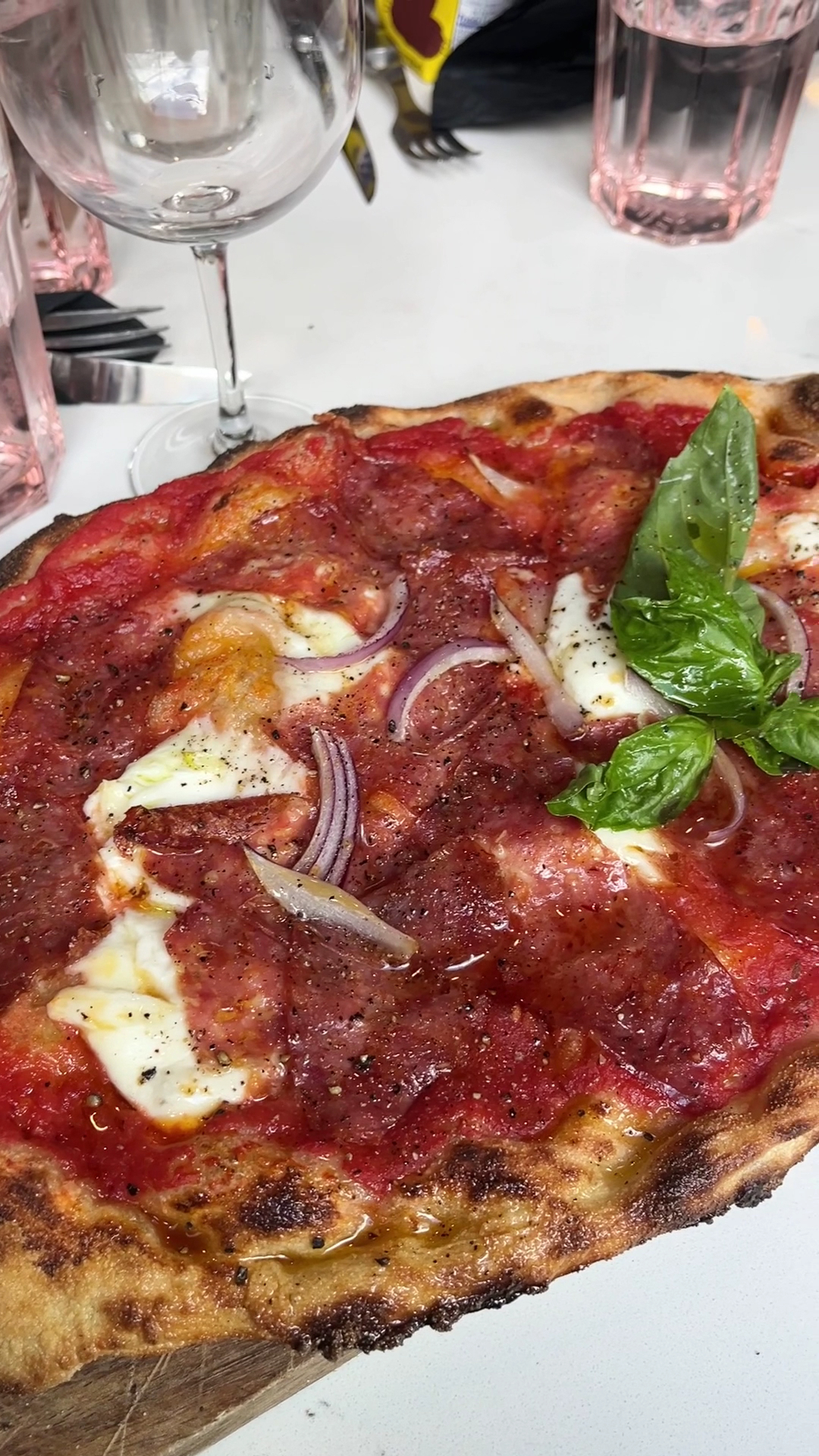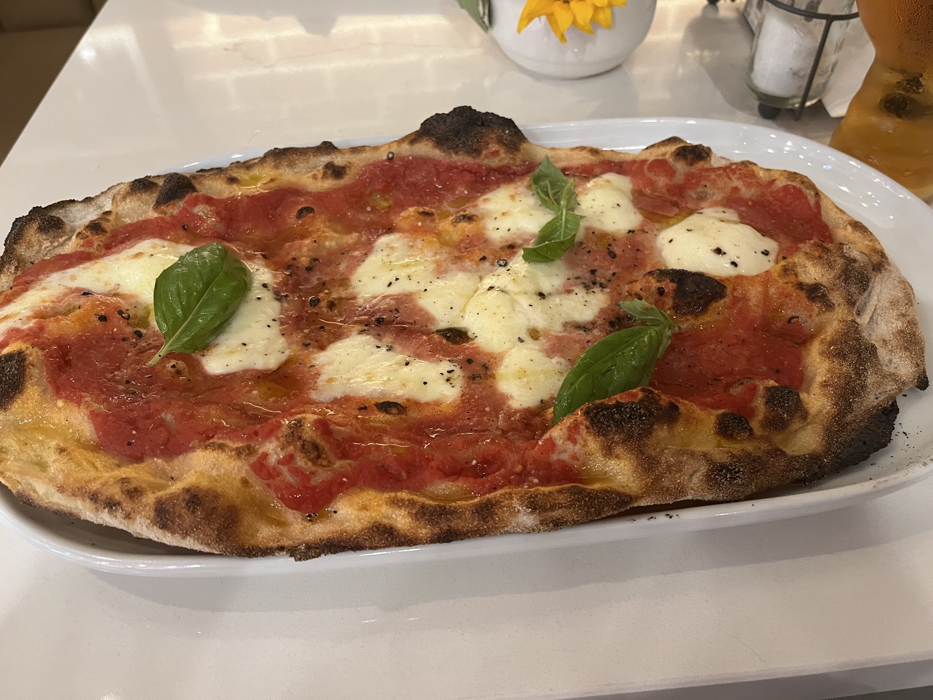 When we arrived, we were told that several menu items required substitutions due to missing key components. That’s understandable, popular spots can run low on certain ingredients, but it felt like nearly half of what our party of three asked about had been altered in some way. For example, one pinsa had a different cheese entirely, which seemed like a pretty big deal for a place that focuses on making one thing. We adjusted and each ordered an appetizer and a pinsa.
