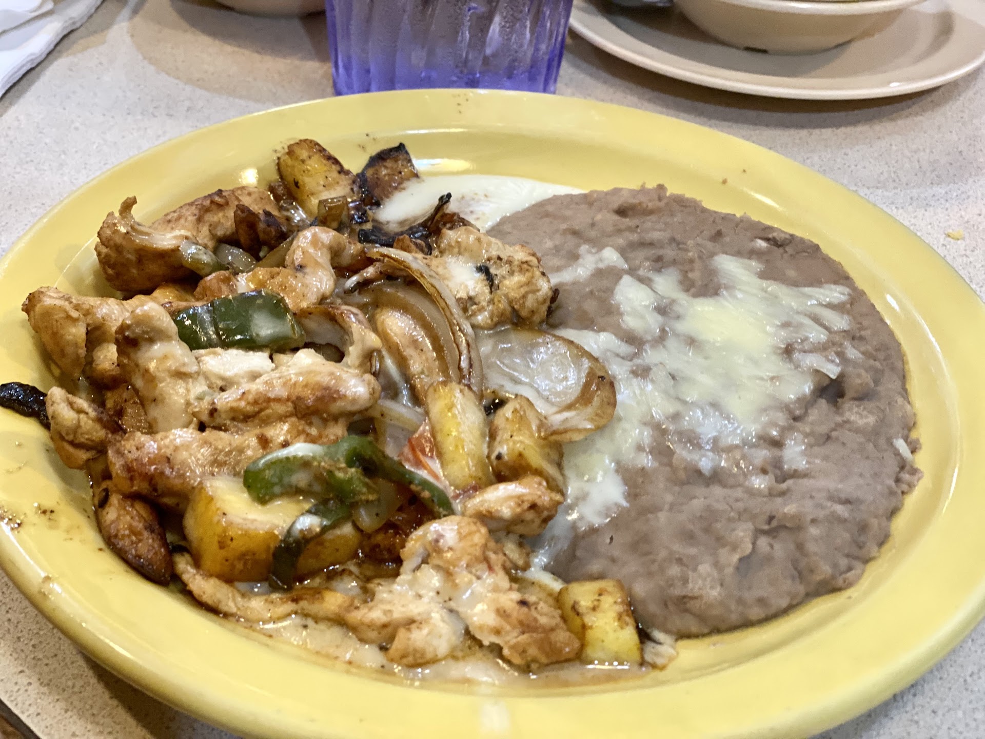 The lunch menu has a nice variety to choose from. My husband had the taco salad and found it average. I had the Pollo Adobo with rice and black beans. The portions were generous. The chicken dish was amazing. It tasted like it was roasted over and open fire with wonderful spices. The black beans were cooked to perfection and very tasty. The rice was fluffy and tasted better after I put hot sauce on it. The chips were fresh, crisp and warm. The salsa tasted like plain tomato sauce. We asked for the house made hotter salsa and added that to the salsa and that turned out hotter and delicious. My entree was hot, but my rice and beans were cool. It was a cold day. The servers were wearing their warm jackets, so it could be that the dishes were cold in the kitchen. I enjoyed my leftovers today and everything was hot and delicious....