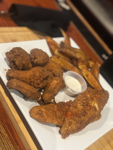 Been to this place twice... the first and the last. A friend purchased a Groupon for us get some Soul food for Sunday dinner. Exciting right? Nope. It's been a long time since I've had such awful food and service. Got there at 4:40 p.m. on a Sunday and should've known something wasn't right because the place was empty. We were seated upstairs with blaring jazz music. Our waitress was pleasant enough (with her visible crack)- though we felt like we were getting on her last set of nerves. She gave us our wine and took our appetizer order. The jerk wings were ok but the fried wings were DELICIOUS. That's what the star is for. Ordered the fat fries and they were nothing to write home about. I ordered the southern fried chicken and waffle with garlic mashed potatoes and collard greens. Chicken was wonderful but the mashed potatoes were too garlicky, the waffle felt like a piece of cardboard and the collard greens tasted like a green leather collar. Also, we didn't get our food til minutes to 7:00 p.m. Certainly will never visit this "establishment"...