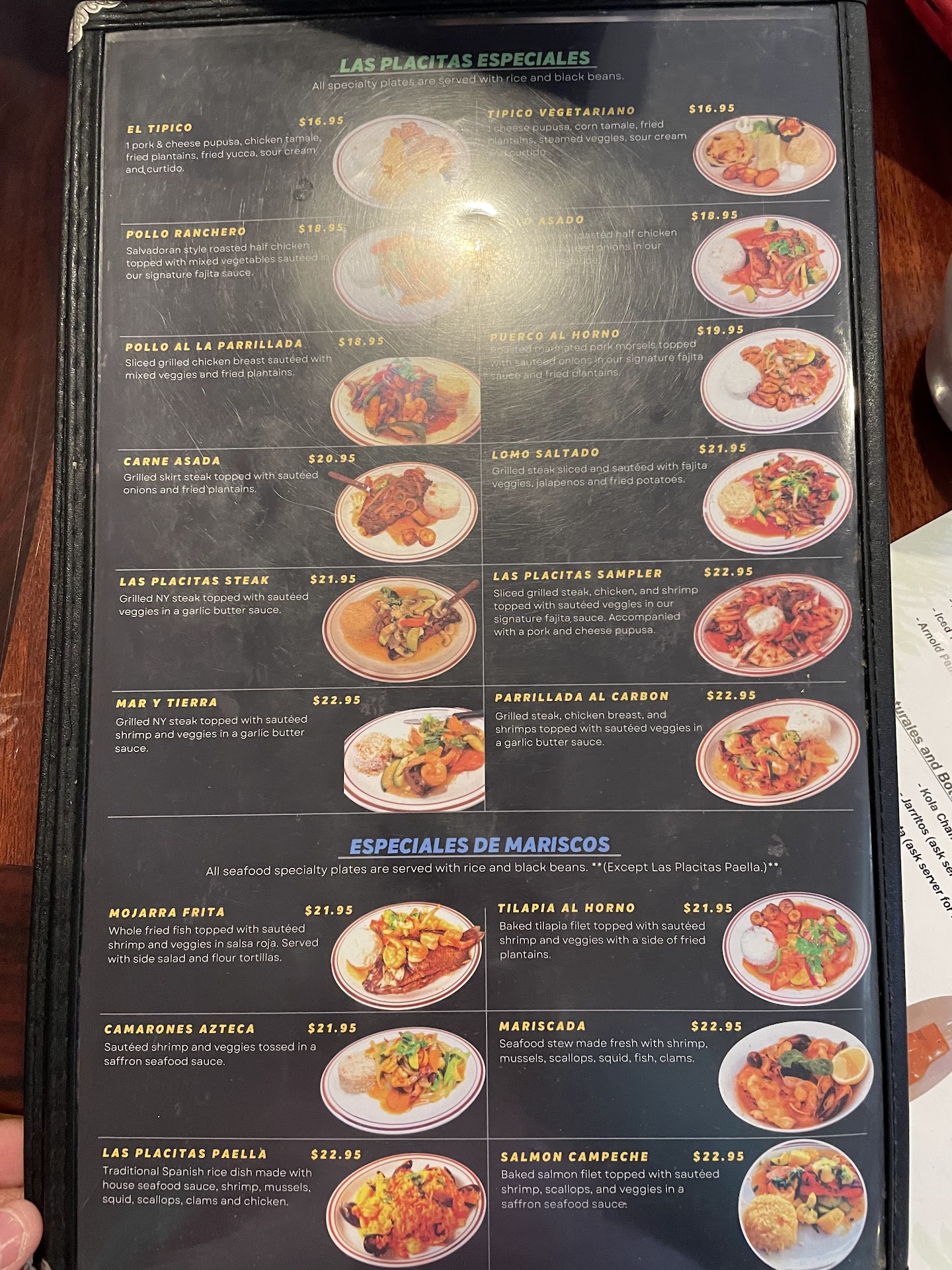 Read moreNOT authentic Latin food. We were the only Latinos in the restaurant and explains why. The prices are out of the way we paid over $151 for 3 plates and 2 pupusas. The math for everything did not add up it was probably like $60-80 above. Three plates probably at $14 the pupusas at the most $5 for two (im just rounding here not exactly) and like $12 for two Drinks alcoholic. Two sodas at the most maybe $100 in total. They hand write the check so be careful. The pupusas were bland it looked nasty from the inside like a grey color this is being the revuelta(pork,bean, cheese). Please don't order the stuffed chille the eggs tasted spoiled does not include ground beef like an authentic plate would. ONLY includes cheese and green peppers that were stale going bad.. They did not have any good hospitality at all but it could be because we were salvadorian too. I don't know why but it seems like they didn't like having other Latinos there. Probably because we'd be able to tell the difference between good Latin food.They were super rude no greeting no good service and really bad food. If you don't know what real salvadorian food is then this is the perfect amateur spot for you. Oh not to mention when they were brining out my food the women saw me drop my knife and continues to try to place the food over my head while I'm bending down to grab it . She was literally looking for the perfect timing to place it just instead of waiting til I get back up so she won't...
