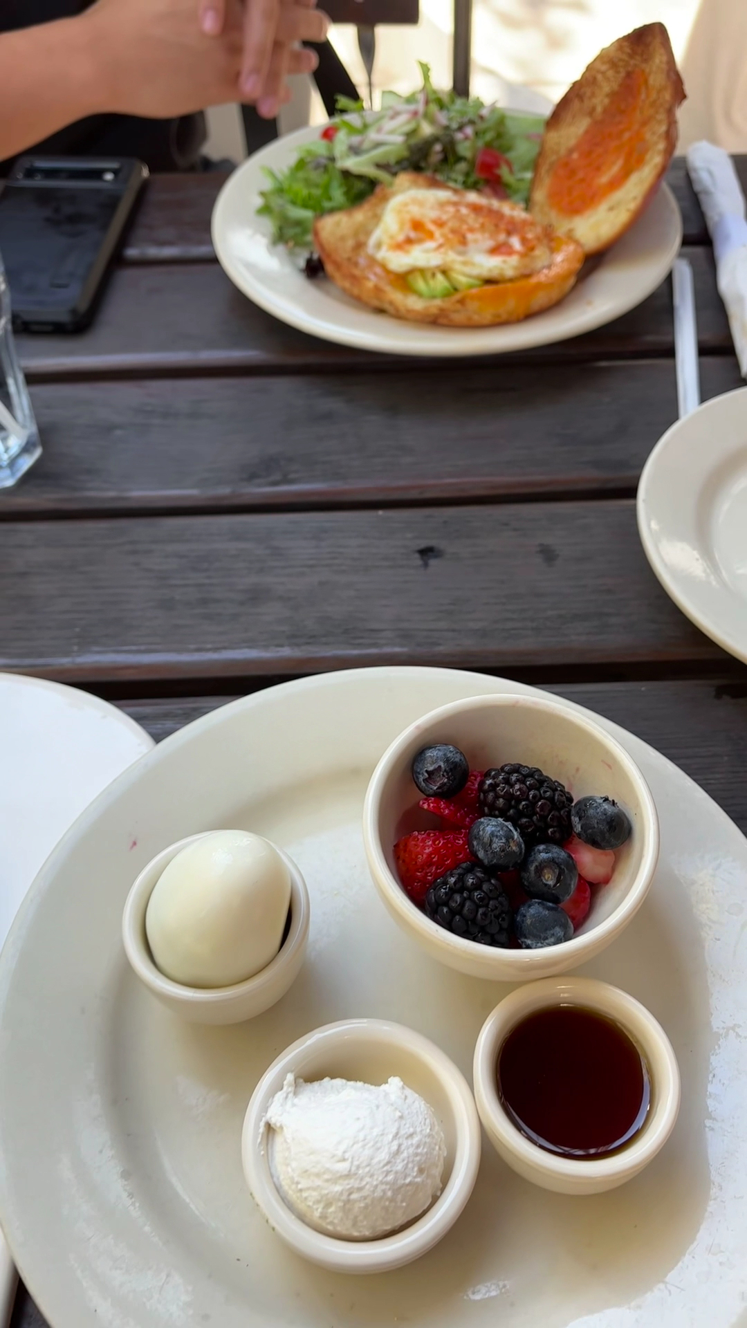 And do the waffle tasted like a croissant waffle it was really sugary so if you’re not a big fan of sweet food, you might not like it. I ordered a side of berries and one boiled egg. If you look at the video attached, the berries were literally 12 berries total no exaggeration, they could all fit in my hand and I could pop them in my mouth.