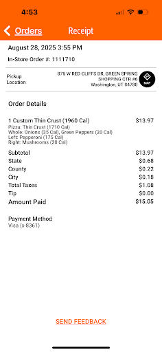 Read moreWorst. Customer. Service. Ever. I ordered through the app and I mistakenly ordered from the Washington store instead of my local store in Hurricane. The confirmation popped up in the app with the address and I noticed my mistake immediately. They would not answer their phone. 13 call attempts as my wife drove me past my local store in Hurricane, past papa John’s, where my wife told me to get the pizza from but I thought not driving to Washington for pizza when I can see the store from my house. When I asked for the manager she (said she was the manager) apologized and blamed it on new employees. There were like 8 people working in the back that I could see as I walked in. It seemed more like they took it off the hook during peak time. A 5 minute walk to get pizzas, while I had my kids for my weekend, turned into about 50 minutes round trip from hurricane and back. Because lady who said she’d be happy to cancel the order for me would not answer the phone for 40 minutes and 13 call attempts as I tried to cancel it.