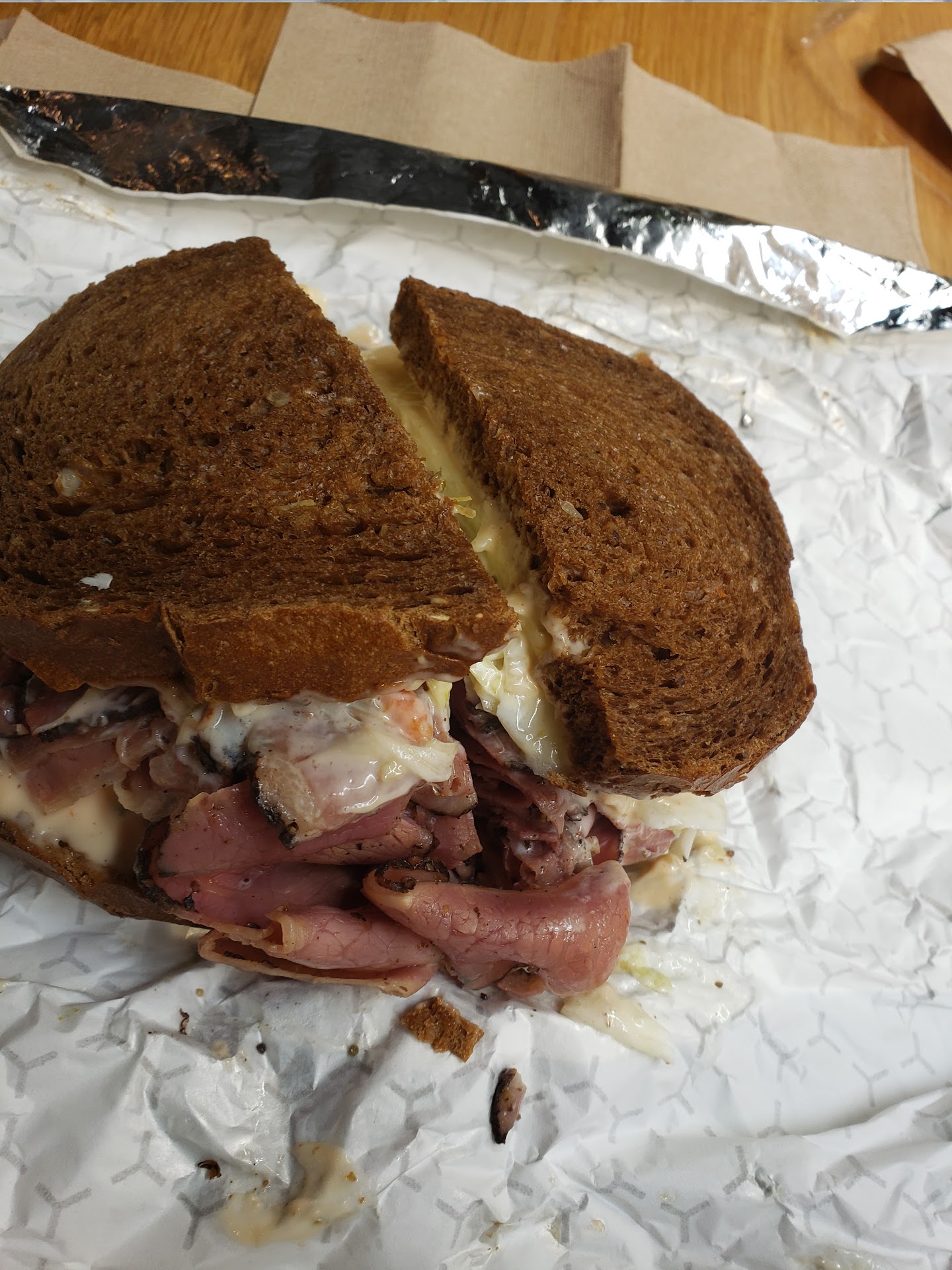STAMP!! The Loeb Sandwich ($14.99 with hot corn beef, sauerkraut, Swiss, & Russian dressing on Rye). Thick, plentiful, & tasty!!