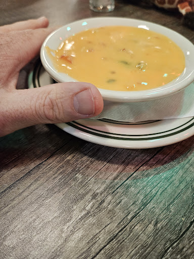 To his quip about cleaning our plates: my wife left 50% of her fajitas after eating none of the veggies and sharing some of the steak with one of our children (too salty and steak was tough), one child left 50% of his chimicanga plate after eating none of the sides, and lastly my two small children ate none of their chicken childrens meal (chicken was overcooked rubber) and none of the steak given to them by my wife. I ate most of my nacho plate and left a half-dozen or so chips. I will say their refried beans were very good. Instead of using the cheese dip on their nachos, they melt shredded cheese.