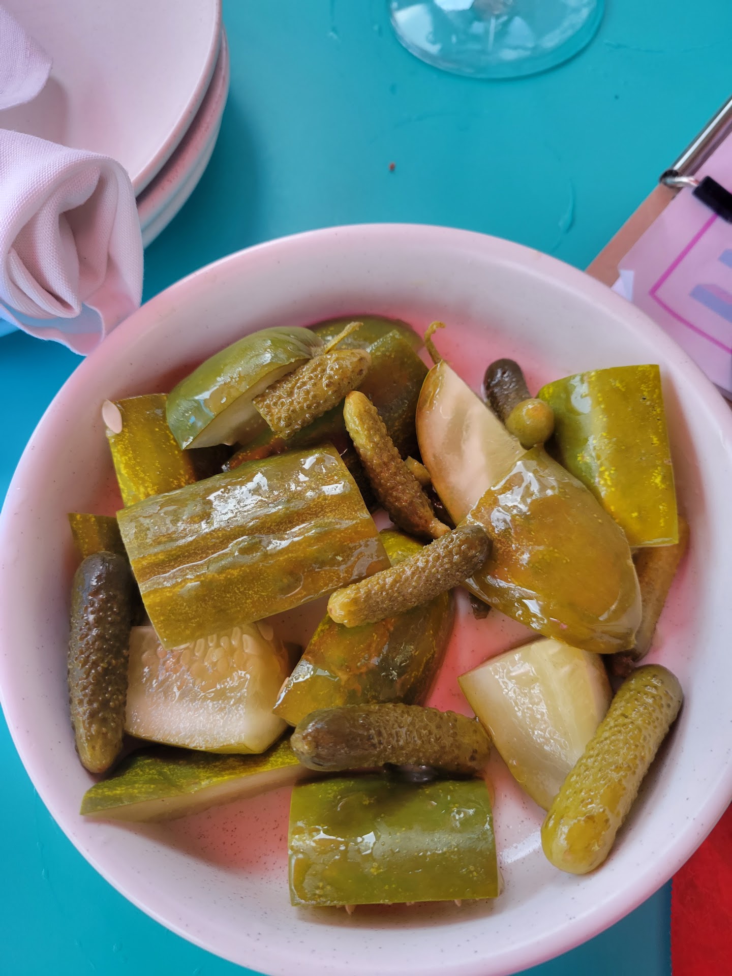 The food was actually inedible. The "daily selection of pickled vegetables" was LITERALLY A BOWL OF PICKLES that I'm 99% sure they picked up from Trader Joe's a chopped up into smaller pieces. I was shocked. The pizza was completely burnt on the bottom and disturbingly chewy in the center. How does that even happen?? I am perhaps one of the biggest fans of pizza in the world and I couldn't even eat it. We also ordered the veggie pizza with "black olives, green peppers, red onions, and mushrooms" and it literally had RAW tomatoes and 3 pieces of mushrooms on it. How??? And the Caesar salad?? I could cry. The "crostini" croutons were 1000% out of a bag that you're given in a school cafeteria, the cheese was absolutely Kraft that's been on the shelf forever, and there was NO DRESSING 😢😢😢😢.