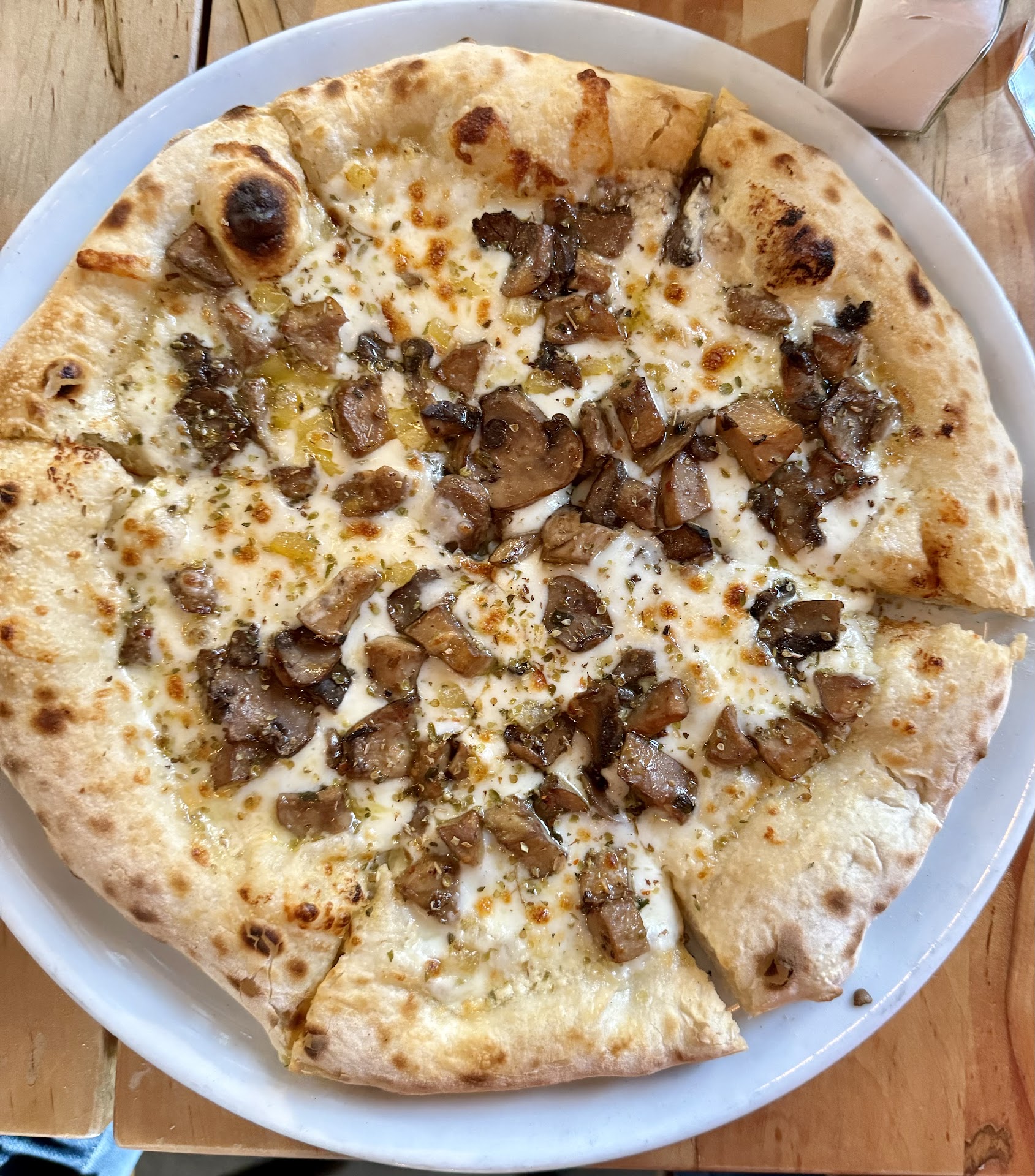 Don't order the bruchetta. $7.00 for one slice of bread cut into two and a tomato on top. We had order two pizzas... One without anchovies and the other with half cheese due to dietary reason. Unfortunately they screwed up both pizzas. We returned one and ate the other because it was a minor screw up. They returned with a new pizza only to have the same mistake. We tried explaining the situation to the manger and he was very rude to my wife and and my colleague. He did not want to listen to our explanation. It took over an hour before we finally received the pizza we originally ordered. The rest off the group had completed eating for some time.