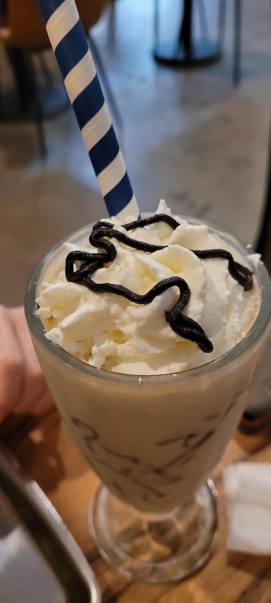 I loved their mocha shake, really delicious with coffee and chocolate ice cream, cocoa paste, and whipped cream. Served in a classic fountain glass, really nice.