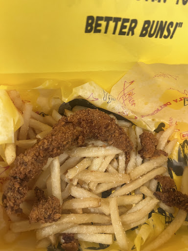 Read moreStep it up, yall. Owner should be embarrassed. We noticed it on the way back to our hotel and the bright colors and splashy logos caught our eye. On entering you realize it looks like somebody threw up enough decor to hide the walls and then assumed we’d all just be distracted by the large TV screen menus. The drink fridges are alarmingly empty other than a shelf of cans of coke and Diet Coke. There’s not much seating, which would be expected since this seems more like a grab and go situation, but should you choose to try to eat in, you’ll deal with a 12” wide table that looks like a 12x2 someone nailed together in their garage. The food?? Well, the fries are great, but nothing special. The chicken doesn’t have a ton of flavor but the breading is really nice and crispy. We wanted to try the sweet potato fries and Mac and cheese, but these were “sold out.” They were also out of ranch and honey mustard, and the ice machine doesn’t work. The food has potential but the rest of the experience ruins it. The people running this show need to step it up big time, and anyone considering trying it should just hop across the street to Five Guys or Jersey Mikes if you want to be sure you can order what you...