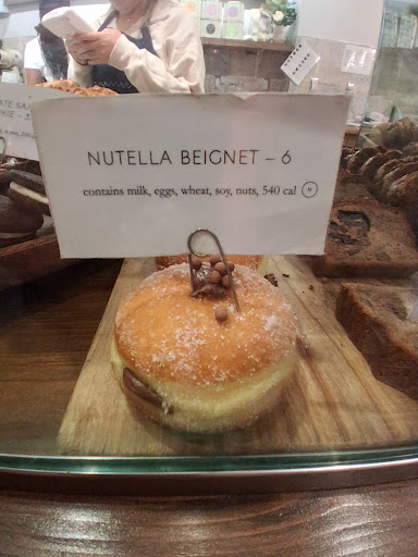 a blueberry goat cheese scone two of the famous chocolate chip cookies that are on Oprah’s list- they were good, but a tad hard. a Mac & cheese croissant! It was delicious! I don’t know if they have them often or not, but if you Iike mac & cheese & croissants, you’ll love it! -a hazelnut beignet - nice pillowy beignet dusted w/ sugar & filled w/ hazelnut cream. -Nutella brownie - nice flavor