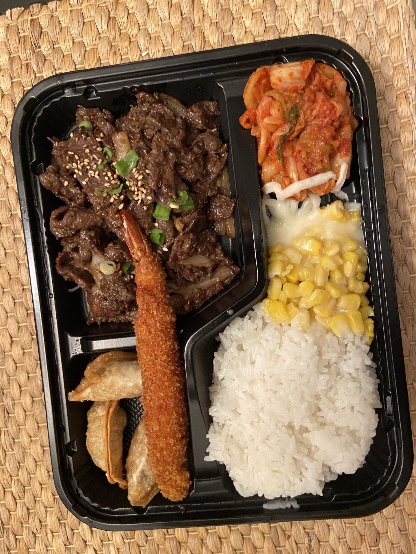 Read moreI used to live in Seoul and the food is actually pretty authentic and not super expensive. Korean food isn’t supposed to be expensive, which is why Anju kind of upsets me. I got the fried shrimp-perfectly seasoned and fried, very tasty. I also got the spicy pork bento and that was yummy with the grilled kimchi. I got a beef bimbimbop and it was very good, but huge portion. I also got the sweet rice honey pancakes and they were sooo good! Those are traditional street food and it makes me miss Korea so much. Can’t wait to order...