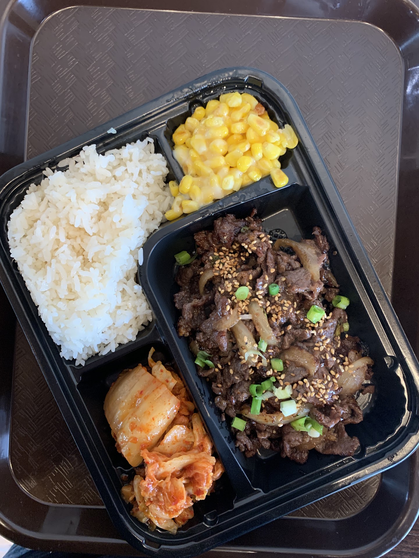 The menu includes boxes and a menu for larger portioned food. They also sell bibimbap. For $10.50 after-tax, I ordered the beef box with white rice, kimchi, and cheesy corn. Each part of the meal was well prepared and the seasoning on the beef...wow...amazing!