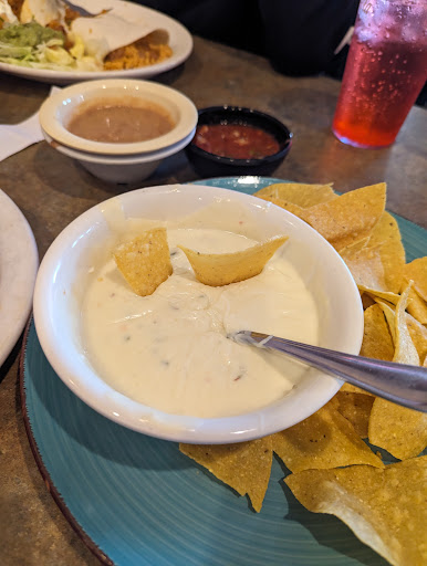 Now the food... The cheese dip was so disgusting, it was literally melted white Velveeta in a bowl. I guess it should have been a clue that it wasn't called queso on the menu, but we get queso whenever we have Mexican so we know what it should be like. It was so thick and started to congeal immediately (having no "sauce" base to it whatsoever) and it tasted just like Velveeta. So gross and completely inedible (for $9 no less)! My chimichunga was not golden brown or crispy at all (this is my go to, so I know what it should be like) so it quickly got soggy between the wet beef inside and the sour cream and guacamole on top. My son's burrito was just meat, whole beans, and rice that lacked any flavor. My husband's burrito was all right but the carne asada was chewy and "gritty" as he said; I tried it and it was not quality carne asada at all. The quesadilla was like they slathered taco bell beef on one side and a small amount of cheese on the other and expected it to stick. The pieces immediately slid apart as soon as he picked them up. My daughters kids meal burrito for $9 was just beef wrapped in a tortilla with beans and rice on the side and the cheese on her beans wasn't even melted. My other daughter had hard tacos that she said were good but soggy on the bottom. My strawberry lemonade had no strawberries in it and tasted really watered down.