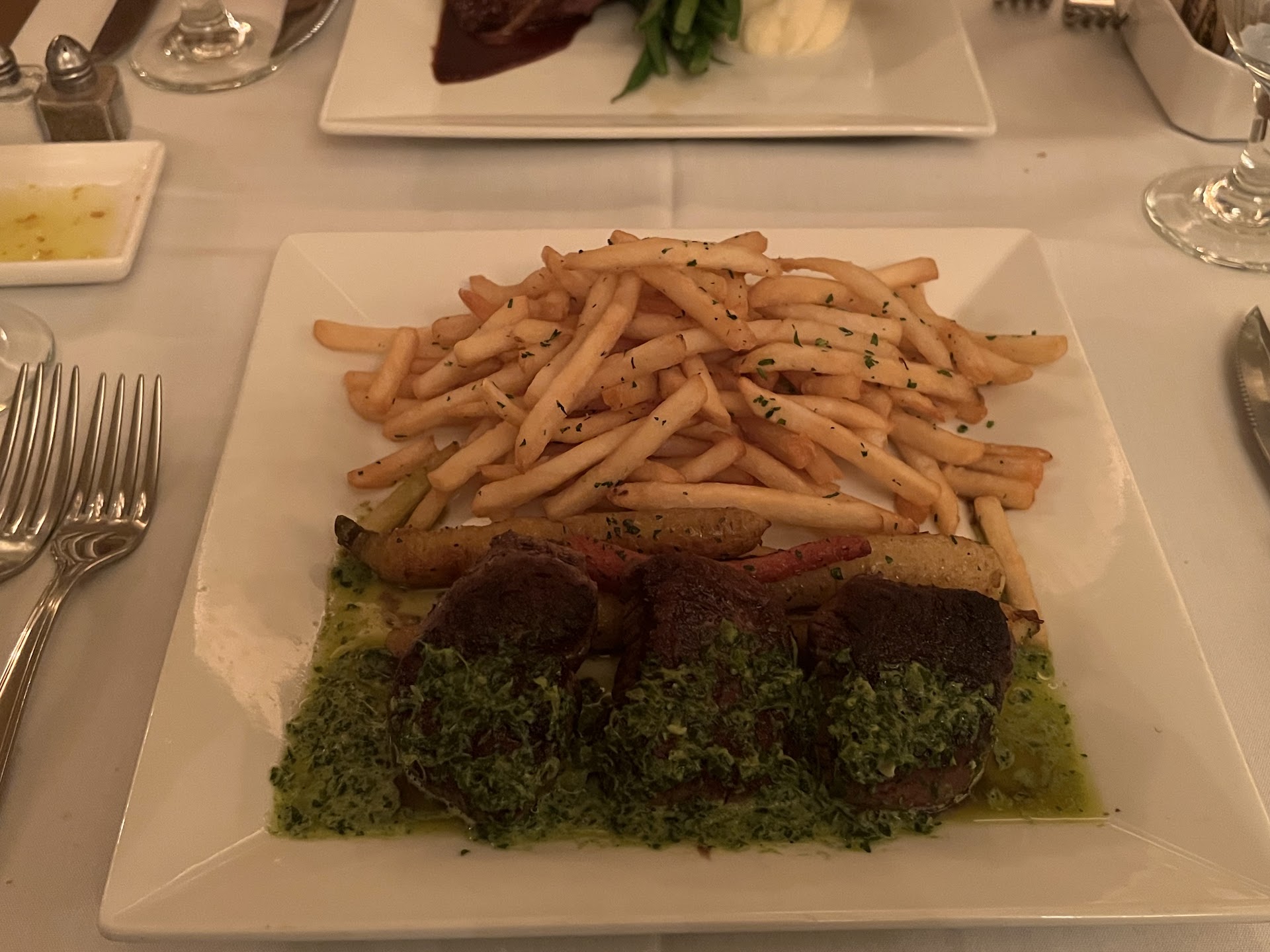 The good: beef medallions, though lacking texture, tasted good