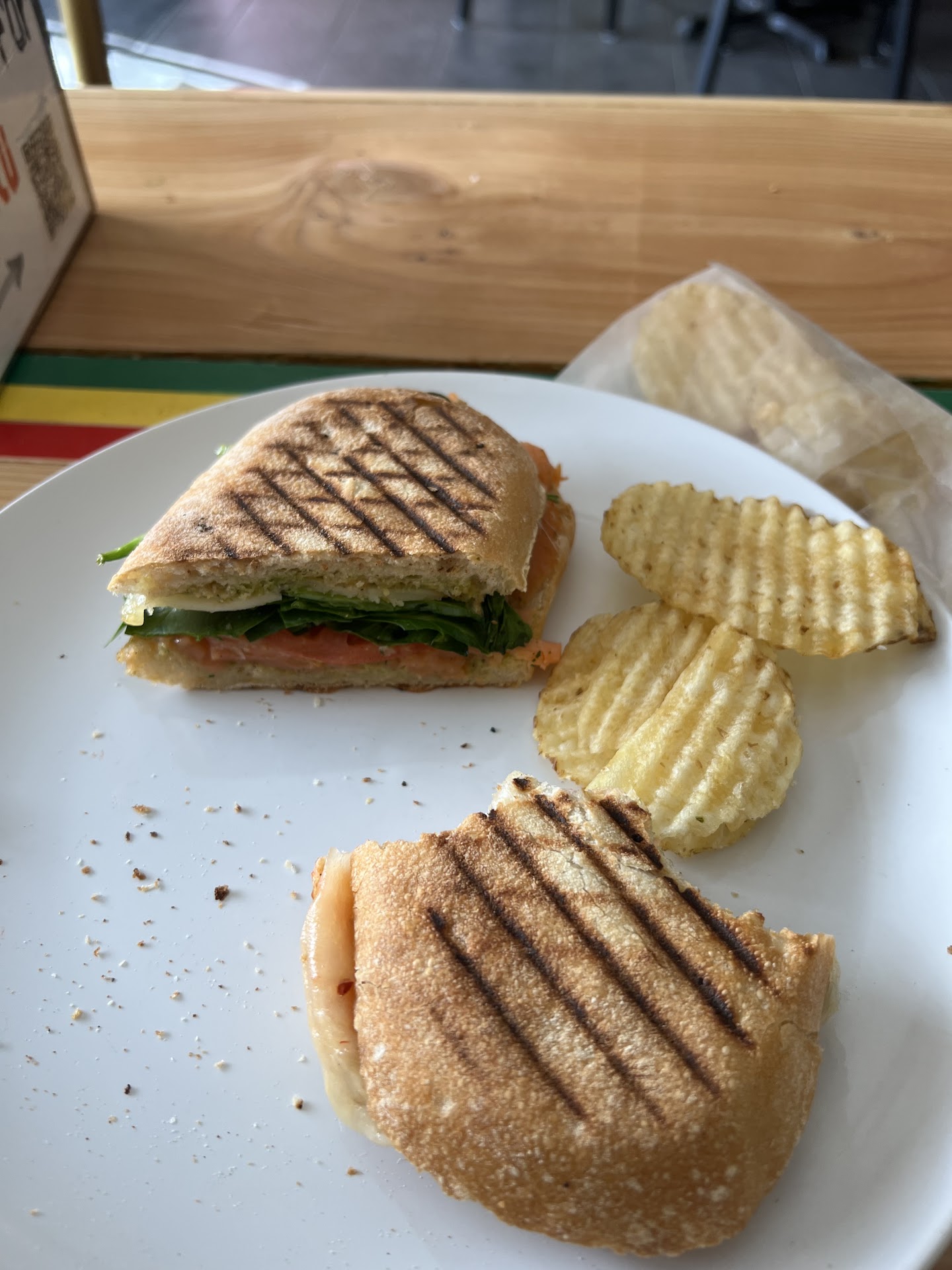 First, I had the smoked salmon panini, this came with a side of chips. The panini was grilled to perfection, it was filled with smoked salmon, spinach, pesto, tomatoes, it comes with onion as well but I requested no onions. The delicious food and exceptional service made each bite a comforting experience! Rating: 10/10