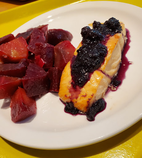 I didn't deviate too much from what I had the first time. The Native Woodlands menu always draws me in with their cedar planked salmon. I think it was prepared differently this time. I didn't detect any of the maple juniper glaze. That may have been because of the blueberry sauce. I should have asked them to put it on the side. I ended up getting one side dish. Normally I would get the sampler, but bison wasn't an option that day. It was some sort of venison chili. I'm not fond of venison. However, I did get the rainbow beets. It was a good healthy option to go along with the salmon. Everything was prepared very well. I do kind of wish that I had tried the manoomin cakes. I've read that the rice cakes have smoked candied salmon. That sounds more innovative than just wild rice.