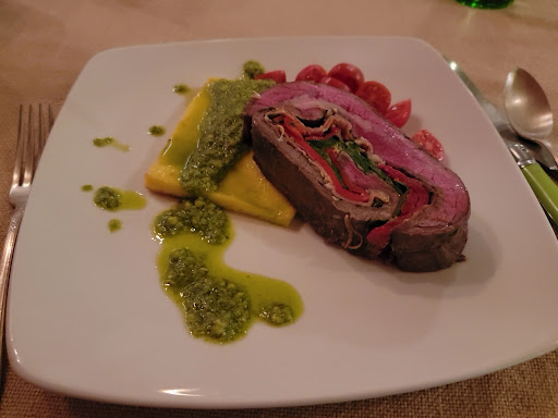 Birthday group of 13 split between two tables and people moving around to visit accordingly ... Food and chef were great, Grumpy Old Men duo running the front, not so much ... they expected people to stay in the same seats where they started, and rather than yelling across the room, people would circulate and visit ... then having a dog running around in the dining area is odd, but when begging at the tables the whole dinner, without so much as a glance or word from the staff until someone finally gave her something, and then getting yelled at by the owner for it? The cook had been saying she gets her dinner cooked for her later using steak and halibut scraps ... the upset owner's scolding consisted of statements of the dog having a restricted diet consisting of very specialized food and feeding her table scraps could hurt or even kill her! Felt like we were in trouble the whole time we were there. Very awkward and unprofessional in my opinion. And then the 45 minutes it took to sort, get, and finally pay the bill was grueling. Granted a couple characters in the dinner group weren't the most reserved or ideal guests, I'm sure, but certainly didn't warrant the less than professional...