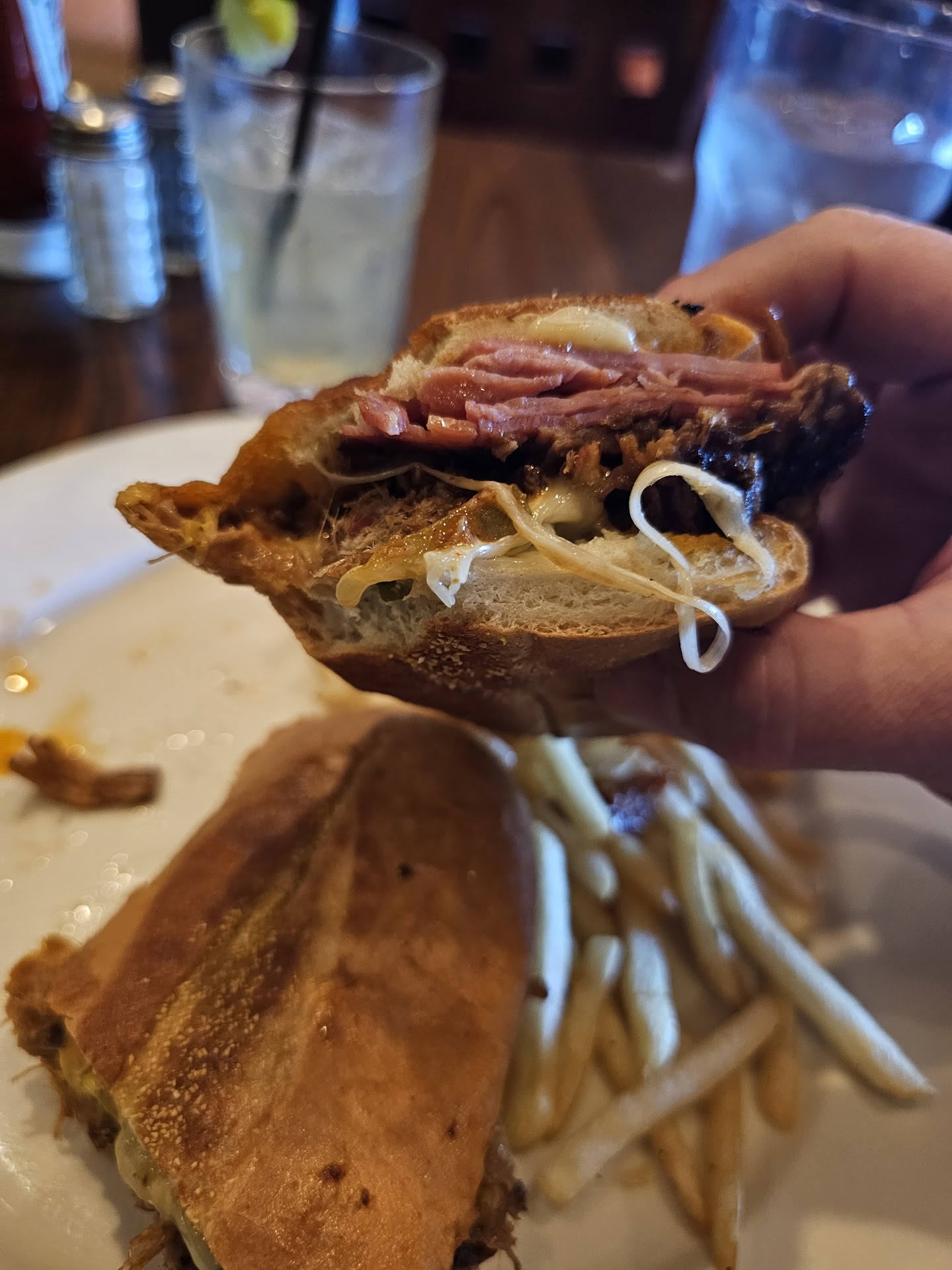 Now on to the food/drinks. I really wanted to get a burger but I decided to try out the Cuban sandwich with fries. I'm glad I did because the sandwich was delicious. Just the right toasty outside and hot melty cheese and moist flavorful pulled pork and ham on the inside. The fries were a nice compliment as well. I did try out a happy hour margarita and a pecan pie for dessert but they both played second fiddle to the Cuban. If I visit Georgetown again, I'll make sure to come back for that...