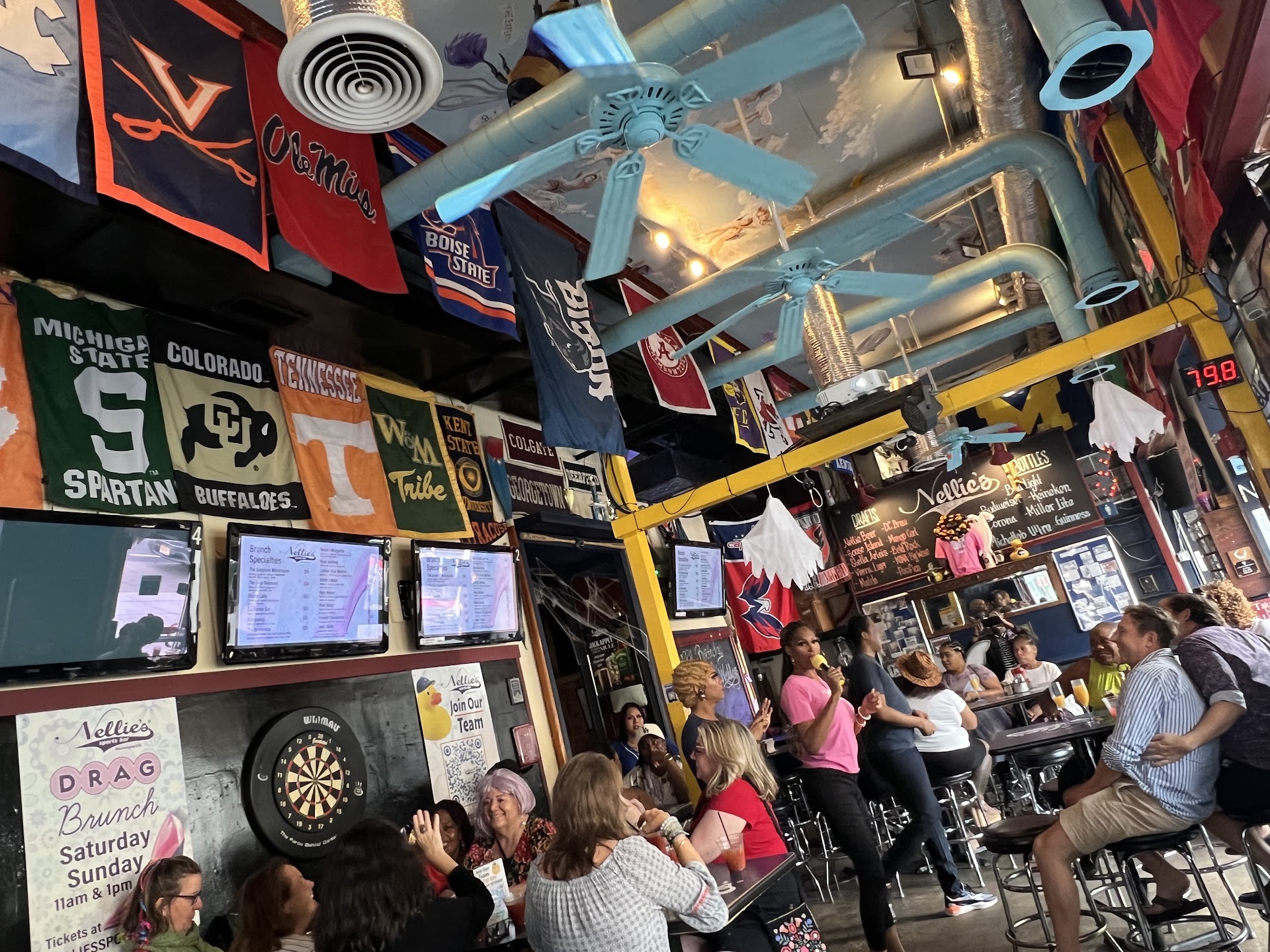 This review is for the drag brunch only. A few days ago, my bestie (first time at a drag brunch) and I traveled here for a drag brunch. When we arrived around 1 p.m., there was a rope blocking the brunch buffet so our only option was to walk upstairs (the buffet was not ready yet). Once we got upstairs, my friend and I grabbed a table and sat down. When my friend came back after getting a drink, I asked if she got the complimentary one included in our ticket price and she was told that we would get that downstairs. Then around 2 p.m., one of the queens walked around & started scanning tickets in order of the largest party size (15 people) and the parties were seated downstairs. My friend and I saw the writing on the wall (that we would probably be one of the last tables since we were a party of 2) so thankfully we met 2 other sweet girls and formed an alliance. We were seated next. Even though all the windows were open (on both floors) and fans were blowing, it was hot! Thankfully I brought my fan which helped a little. When we got downstairs, it was cramped, crowded, & dreadful because of the humidity. Shortly after, they opened up the buffet and went table by table. Then around 2:55, it was announced that they would start shortly (this was not what I expected since I had to be at the train station by 5 p.m., but it all worked out in the end). The food was pretty good, but since it was sweltering I didn't have much appetite. Now for the best part of the brunch: the queens. They were amazingly talented and I gave them as much money as I responsibly could. It's certainly not their fault that the logistics, communication, and organization were non-existent. My friend enjoyed her first drag brunch which is all that really matters to me, but I highly doubt that I will ever come back again...