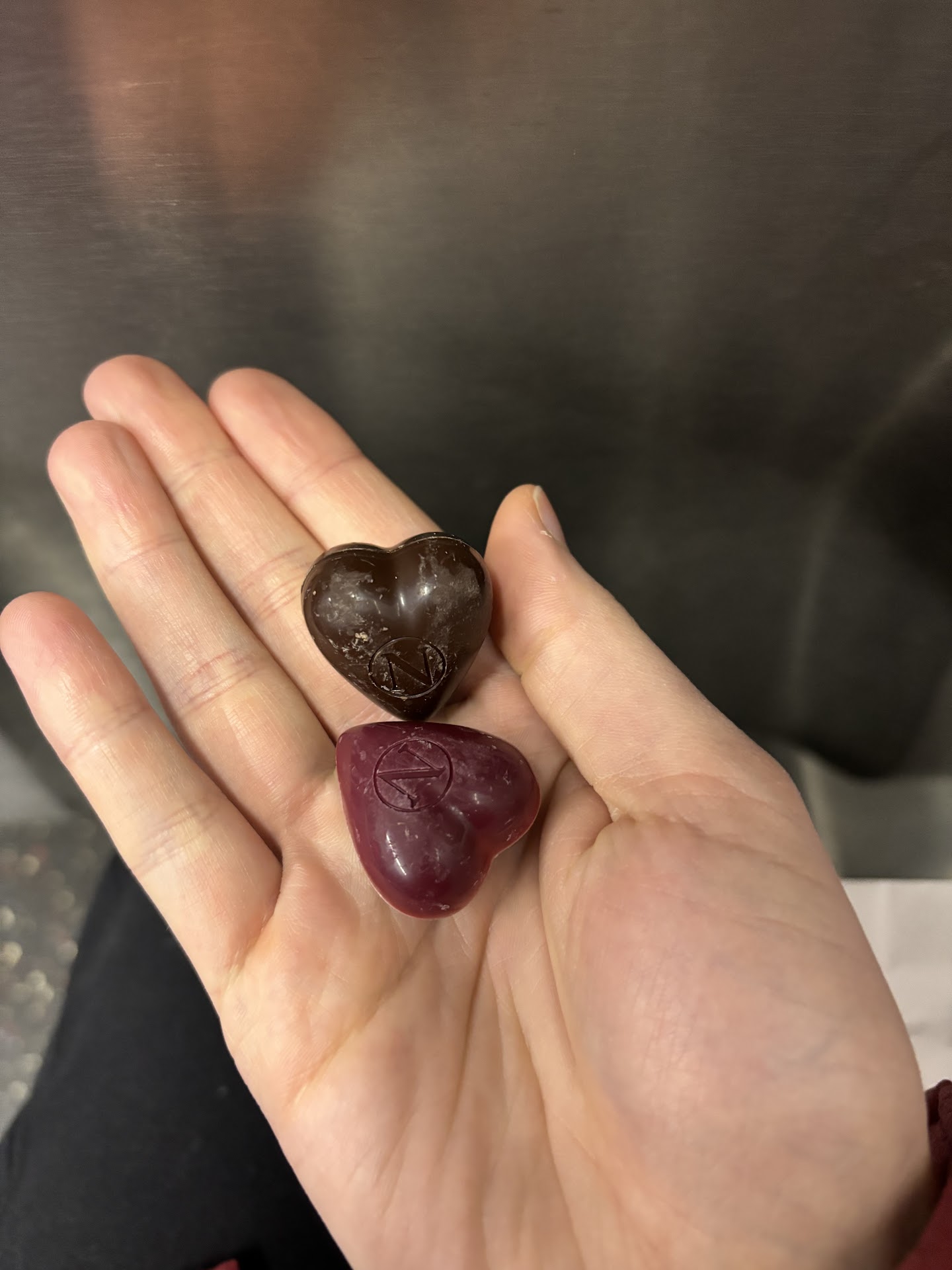 It’s located in Union Station shops on the highest floor. The store itself is tiny and offers boxes as well as individual chocolates. I was a bit surprised at the small selection they had, but I guess they focus on quality over quantity. And let me tell you — after trying these chocolates, they live up to the hype. Layers of delicious chocolate, each with different textures to make each bite a full journey. The chocolates are often crafted with different flavors; for example the pink heart chocolate in my photo had a hint of rose, while the brown one had a hint of cherry.