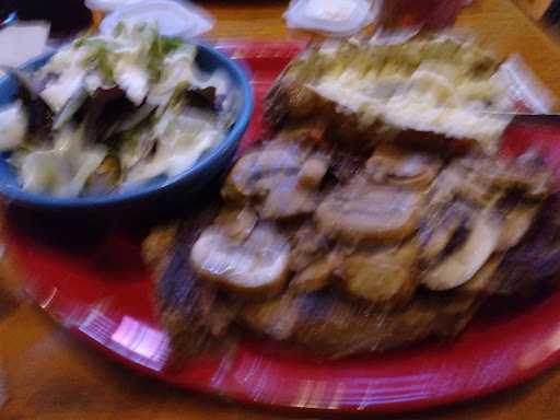 Went here for my first time on Sunday. It was 10:30 in the morning. They were busy. Took an hour and 10 minutes to get our breakfast. There was two of us. I had the basic breakfast. Unfortunately they were out of hashbrowns. So I hadn't have their flavorless country potatoes. They give you about 1/4 a cup. I had the sausage patties. They had a good flavor and were not spicy like a lot of places. So I was happy about that. I had the white toast. Just plain toast nothing special about the bread. My friend ordered the biscuits and gravy. It was just awful. Tasted and looked like flour paste. The place was loud. Very loud. Like eating in a high school cafeteria where the kids were about to get out for summer vacation. Very disappointed but my friend seen they had smoked prime rib so we decided to go back for dinner. Sat down. Our server was sweet. Had a hard time carrying her tray with drinks on it or food. So she asked us to take our items off the tray ourselves. Ordered our food. Came pretty quick. I had the rib eye and she had the prime rib. Her prime rib was served completely cold. So they said let us stick it back in the juice to heat it up. We'll it did some but her prime rib now tasted just like the juice and not like it was smoked. It turned out to be so tough no matter how she tried to slice it that she sent it back. My steak had no flavor. I had ordered mushrooms with it. It was like they opened a can and dumped them on my steak. The meat was tough. Was the worst steak I have ever been served!! I had just had a steak at Buzz's Tavern a couple days before and it was so good. Anyway. When she asked me if I wanted a box. I said no thank you that is the worst steak I have ever had. She immediately got mad. Took off with my plate. Came back and slammed our ticket down and said I took the food off. Well. I had planned on paying for my food. I just would never go back here. The baked potato was good and the dinner salad was ok. So I called another waitress over and explained the situation and how we were just treated. She said she was sorry how the other person reacted. I have never sent food back in my life. I will never go back...