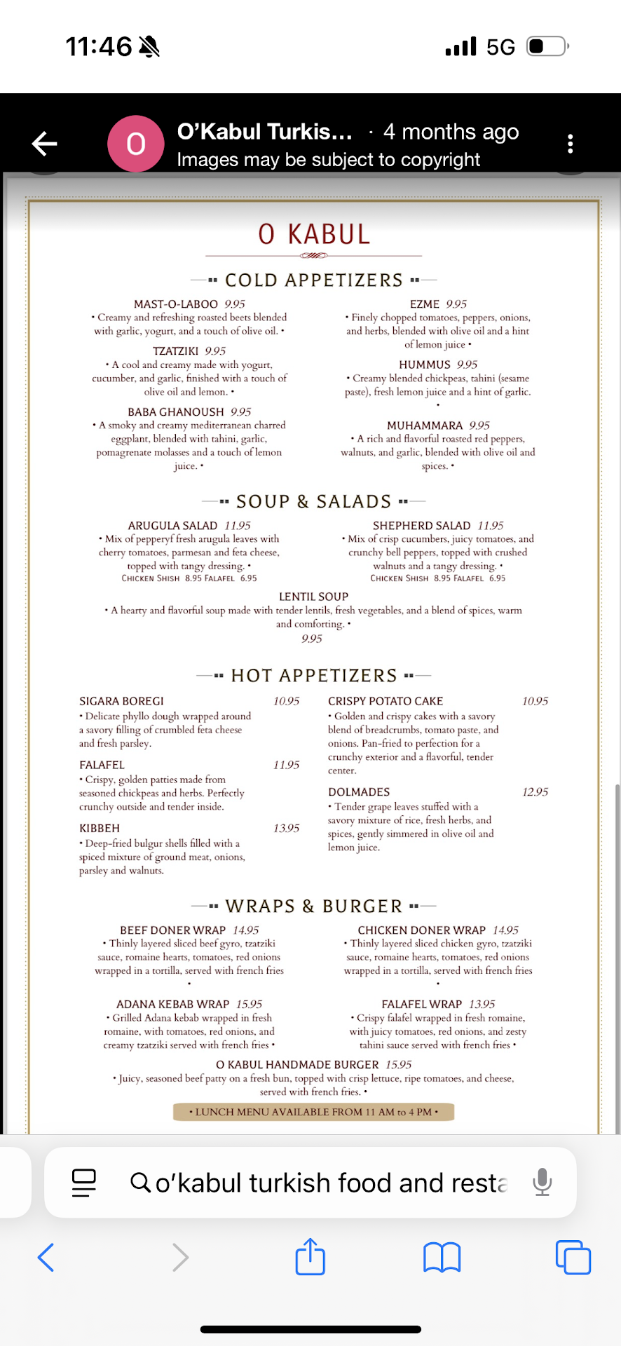 O’Kabul Turkish Food and Restaurant, located in the heart of Northwest D.C., offers an exceptional culinary journey through the rich flavors of Turkish cuisine. This family-owned establishment exudes warmth and hospitality, making it a must-visit destination for anyone in the area who craves authentic and hearty dishes.