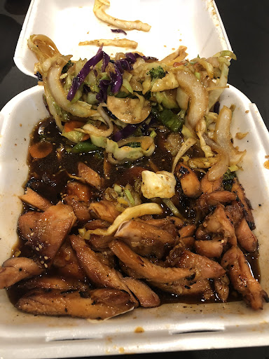The quality of the meal gets an A+ . I ordered the spicy chicken breast it came with two small scoops of rice and a simple lettuce salad with a white dressing. The salad was fresh and delicious, the dressing was pretty good. The chicken was high quality meaning there was no funky fatty bits. The flavor was delicious. It most definitely was spicy. I like spicy, but it could have been almost a little too spicy for me. It also came with a little container of teriyaki sauce which I dunked each of my chicken into, to lessen the spice level. Again though the flavor of the chicken was absolutely amazing.