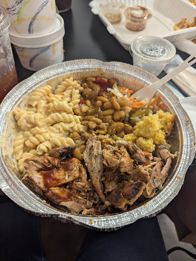 Read moreIn the pictures, I combined all of my food because that's how I like to eat it LOL. But when you receive the order, the sides do come in separate cartons. I dined here for the first time visiting Union station and I am thoroughly impressed! When I come up North to visit, I usually have a rough time finding a good food spot that's closest to the southern food that I like. I must say that I was very impressed with this restaurant. The man that took my order was truly the sweetest person and was amazing! He was very accommodating to my order request and just had the utmost best customer service. I ordered The two meat special but chose double chicken because I don't eat beef or pork. For the sides I ordered the mac and cheese, the bourbon beans, and it came with cornbread. The food was out of this world! I chose the Kansas City BBQ sauce and I believe the Texas barbecue sauce. It went perfectly with the chicken. It also came with coleslaw which was really good, especially since I usually don't eat coleslaw. All of the good tasted good but my favorite item was the beans! I've never had beans that had peach in it and tasted so good. I wanted the recipe to this! I believe I received a great portion size for the amount of money that I paid. The wait time isn't too long either. I would highly recommend trying this place If you're looking for the closest thing to some real...