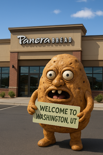 Read morePulled into the Panera Bread drive-thru in Washington, UT, expecting soup and bread… not to lock eyes with a lumpy, grinning loaf of bread holding a “WELCOME” sign like he’d been waiting for me personally. He should be locked up in a straight jacket or put back in a Stephen King thriller novel!