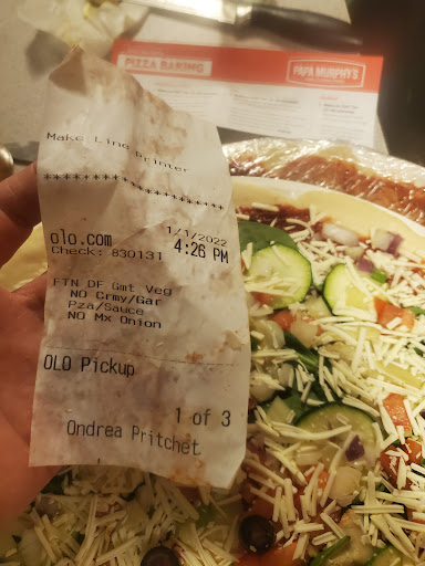 DO NOT order from this location! Been doing Papa Murphy’s on Friday nights with our family for YEARS. Never in years have I seen such consistently horrible service! To top it off they are rude. As people sit waiting for on line orders way past the estimated time the employees all look like they hate their jobs and that they are miserable. I sat waiting over 30 minutes and did not hear one greeting to any customer!! After 30 minutes I went and waited in my car, my order was an hour an 20 minutes past the estimated time! For a medium 2 topping take and bake pizza!! This has been going on in this store for a few months now. I could see one bad day in the place but service is beyond bad! The product is decent and this location is convenient but sadly I think we’re done here! One woman walked in and the staff just gave her a look. One employee said: do you have an on line order? To which the woman replied, no I’d just like to order a pizza. The employee looked away from her then turned and said we are at a 2 hour wait! Really, for a take and bake pizza! There are NO excuses. To add- the cooler for cookie dough and salads was stark empty on a Friday afternoon! On a Friday! Be prepared people, and if nothing else be a little friendly! No tips for these guys! And I think this will be our last trip to...
