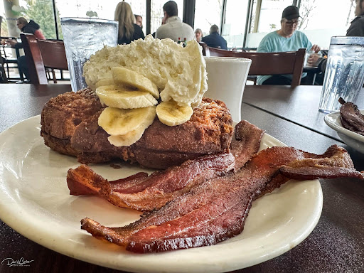 As for the food, it was unfortunately underwhelming. My wife ordered a Belgian waffle, which had no flavor. I had the eggs Benedict, but the hollandaise sauce was bland and lacked the usual lemony zest. The hash browns tasted like they’d been cooked without oil, and parts of the ham were cold and not fully cooked. I also ordered a side of bacon, which didn’t reach the kitchen until after I’d already received my main dish. It arrived surprisingly fast — and unfortunately, it was floppy and seemed microwaved. While the eggs were nearly done right, they were slightly undercooked — and I know eggs can be tricky to perfect, so I’ll acknowledge that.