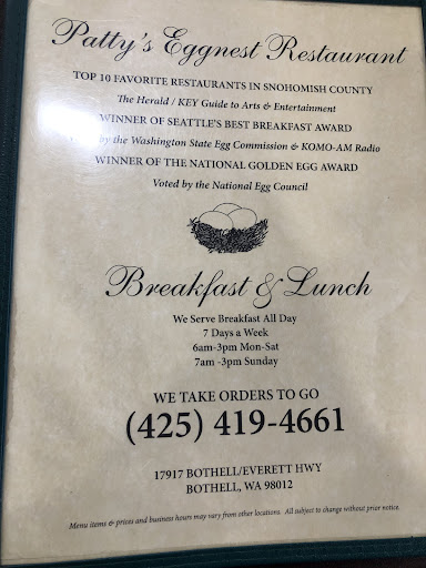 Read moreI went to Bothell to do an inspection related to work and my client was late, so I needed to use the restroom while waiting and stopped by patty’s eggnest, which was the closest restaurant. I asked the lady in the counter where the restroom would be. Her immediate response in a very rude manner was “you can’t use the restroom if you don’t buy something “. I was surprised why one person coming to their restaurant and using their restroom would be a big deal and why should she be that rude! I bought a soda and expressed my dissatisfaction and that I think she was rude too. The lady went on saying leave the property or I’m gonna call the police. I used the restroom (because I bought something as per her request) and then sit to drink my soda. The lady called the police and reported a disturbance and trespassing. That was very dramatic and I don’t know why she would think she can call the police unnecessarily and falsely accuse someone this way. Before leaving I asked her for a receipt, and not only she refused to give me, but followed me outside to take photos of my license plate! I didn’t want to waste more time than I already have but that really felt inappropriate treatment and very dramatic. It kept me thinking if this is because I was black and the lady is racist or is it just her personality. Either way, she this really disturbed me and felt disrespected! At some point, I saw how dramatic the lady was and I even started taking video. I called the police later to clarify things and explain what really happened. Definitely my worst experience! The lady just ruined my day!