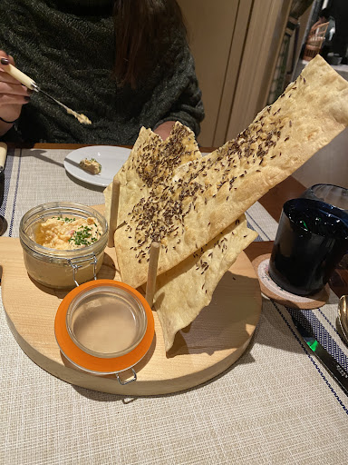 We received our drinks with a bread basket that included a baguette and cinnamon raisin bread. The blanc de blanc was phenomenal. The bread basket was ordinary but good. The butter was easily spreadable and unsalted.