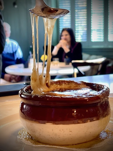 We received our starters, pretty quickly. My husband enjoyed his escargot and the French onion soup should not be missed, it was perfect.
